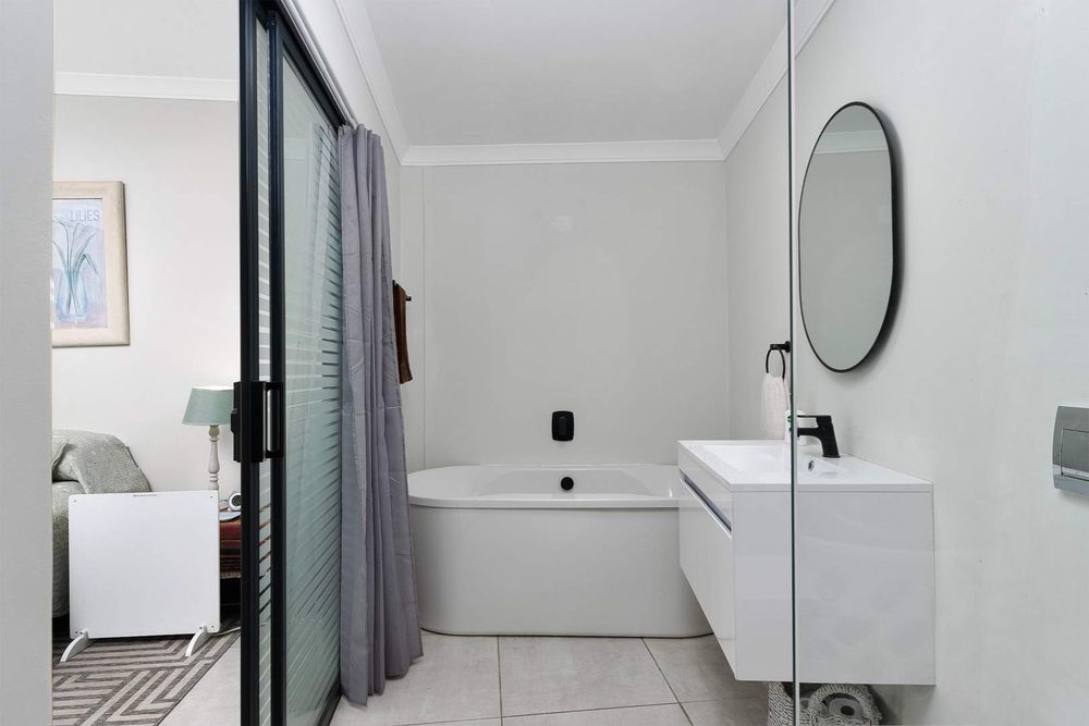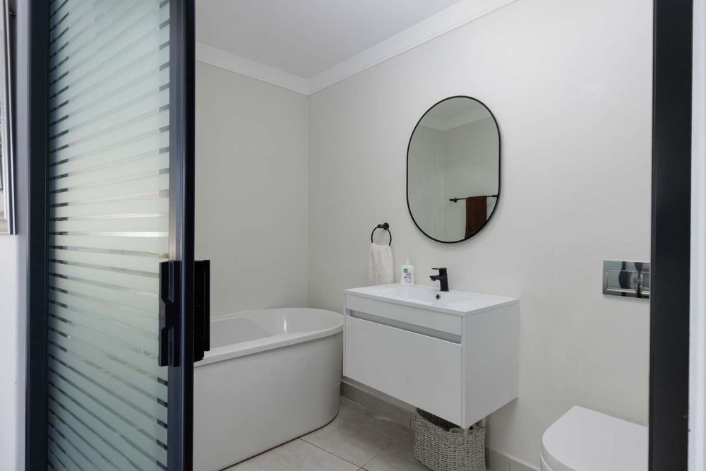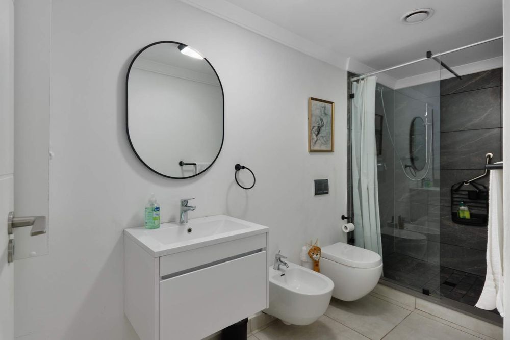 The main bedroom offers an en-suite with a vanity, shower and freestanding bath, while two additional bedrooms share a second bathroom with additional storage, vanity, bidet and shower.