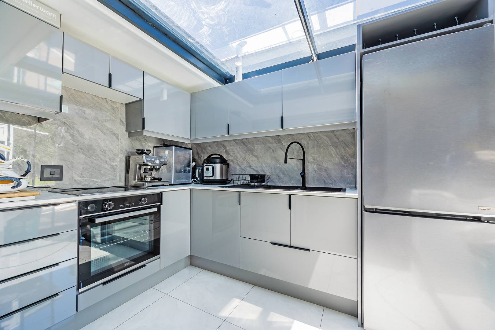 Designed with easy family living in mind, the home welcomes you with a spacious open-flow layout where contemporary finishes blend seamlessly with thoughtful design. The generous kitchen forms the true heart of the home, featuring a central island with gas cooker, ample cabinetry, and a natural flow into the dining area. From here, doors open onto an inviting outdoor entertainment space — perfect for weekend braais, relaxed afternoons with friends, or simply enjoying the garden and sparkling pool.
