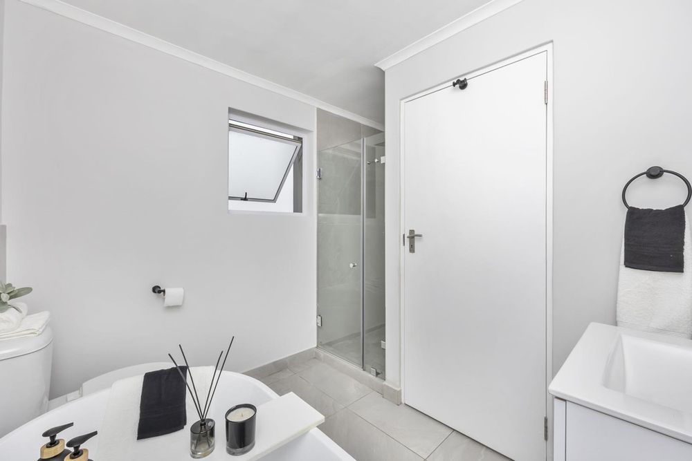 The bright and airy lounge area seamlessly connects to the braai area, ideal for entertaining while enjoying the stunning view of Table Mountain. Direct access to the garage adds convenience to your daily routine. On the 2nd floor, the first bedroom features an en-suite shower and built-in cupboards, while the second bathroom offers a convenient shower-bath combination. The other two bedrooms are light-filled and offer plenty of built-in cupboards. Blinds are installed throughout the unit for added privacy and comfort.