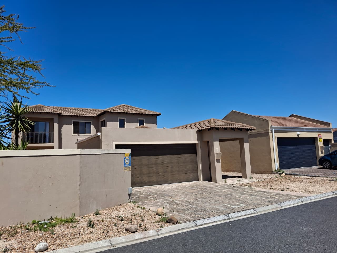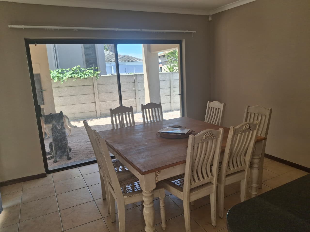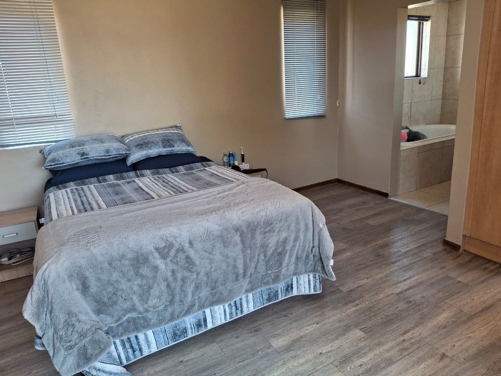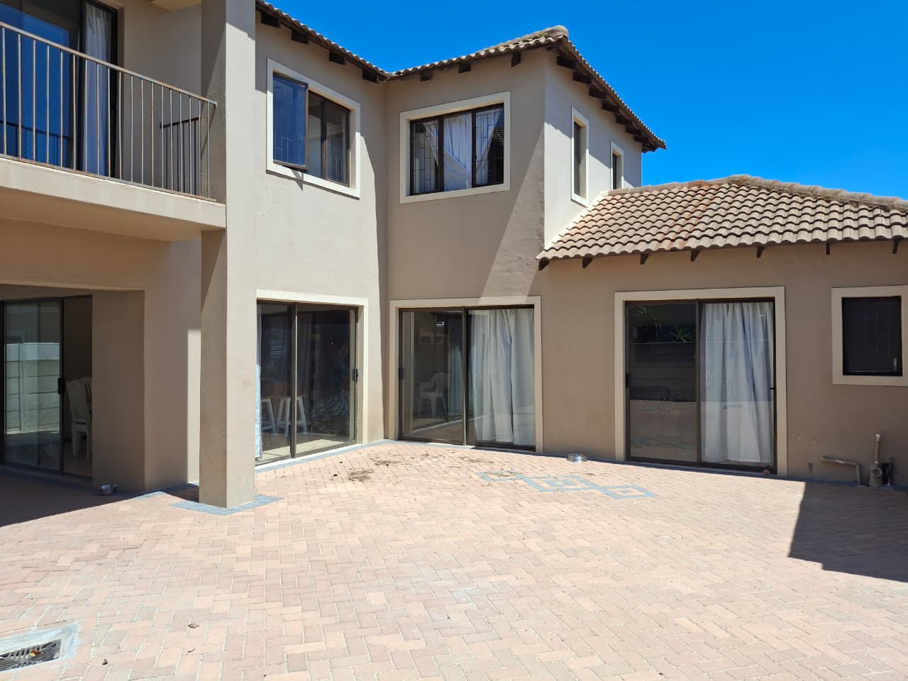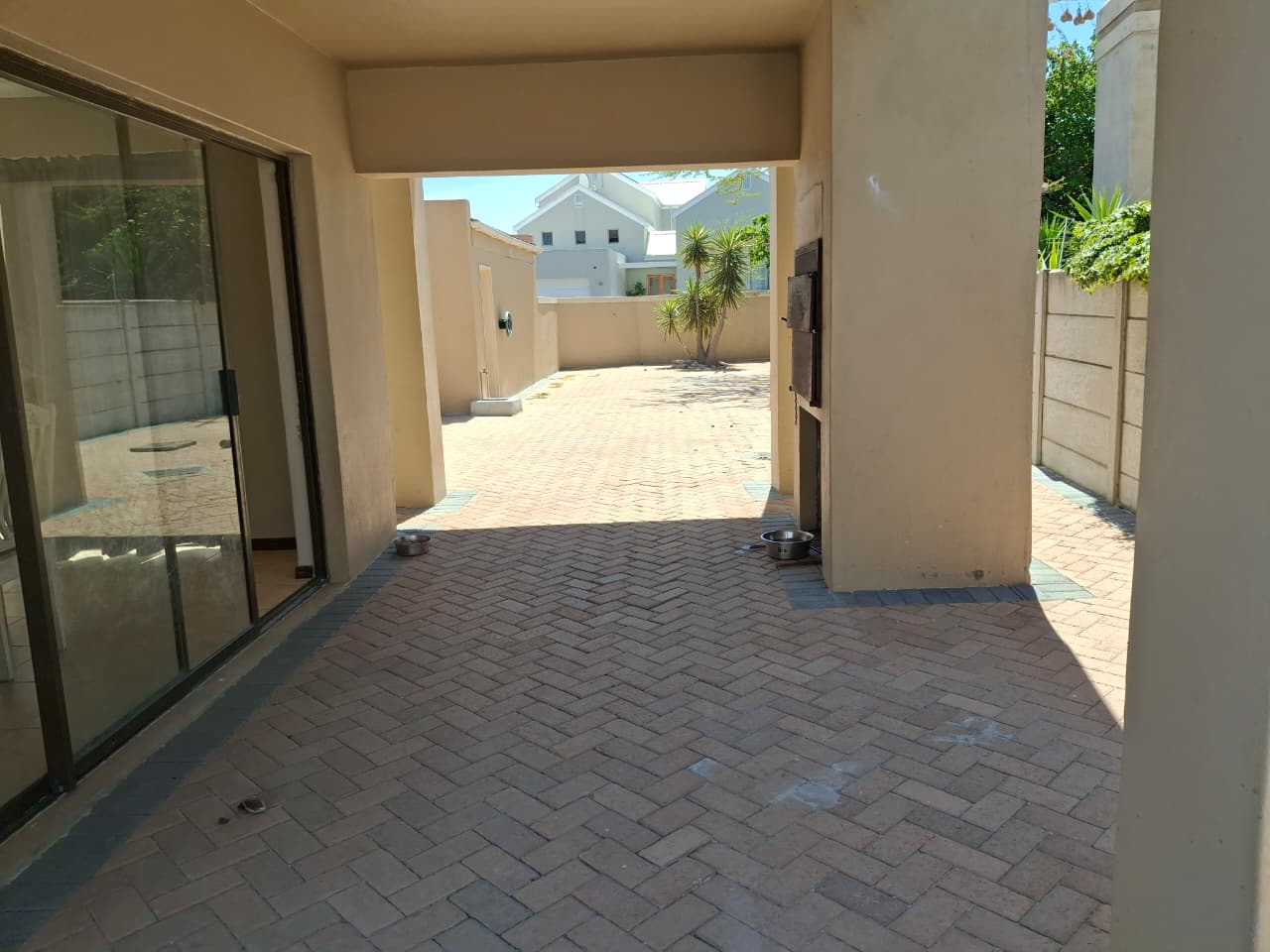 Sliding doors from the lounge and dining room steps onto a covered patio and braai area with large paved open back area for convenience and low maintenance.