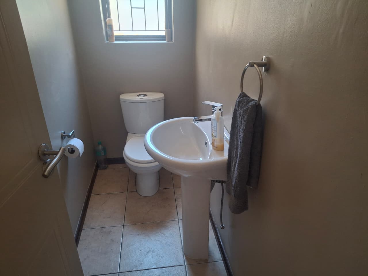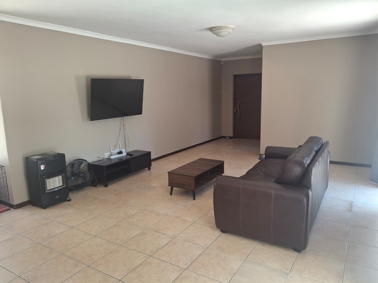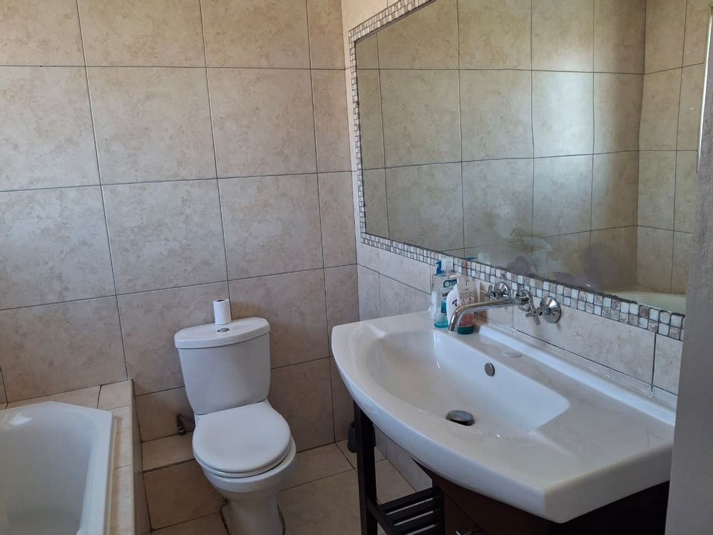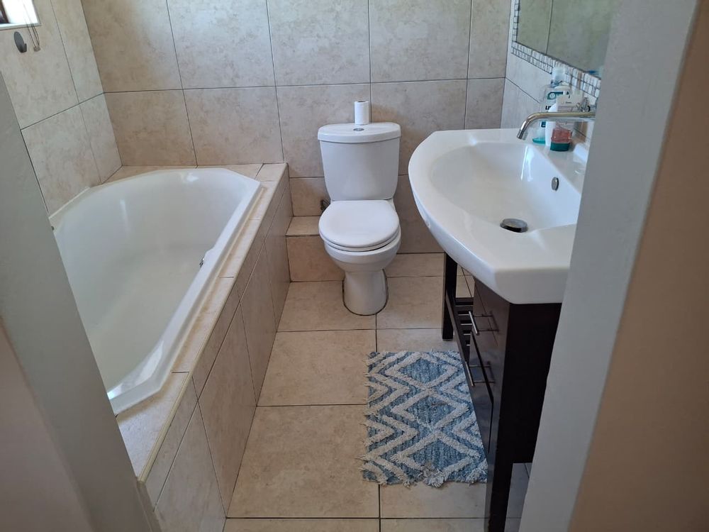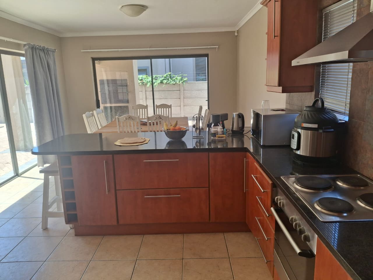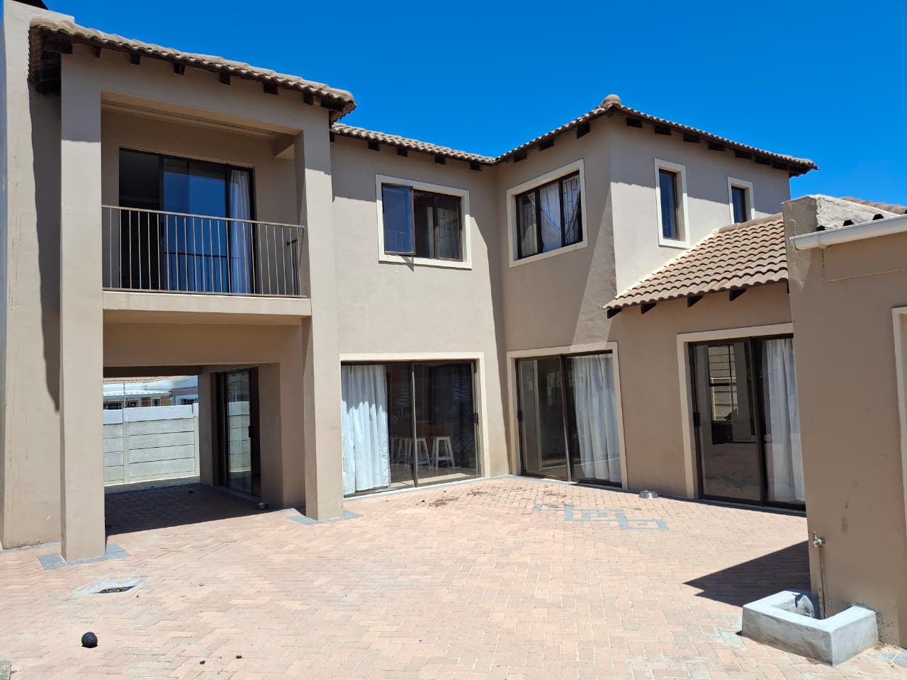 Sliding doors from the lounge and dining room steps onto a covered patio and braai area with large paved open back area for convenience and low maintenance.
