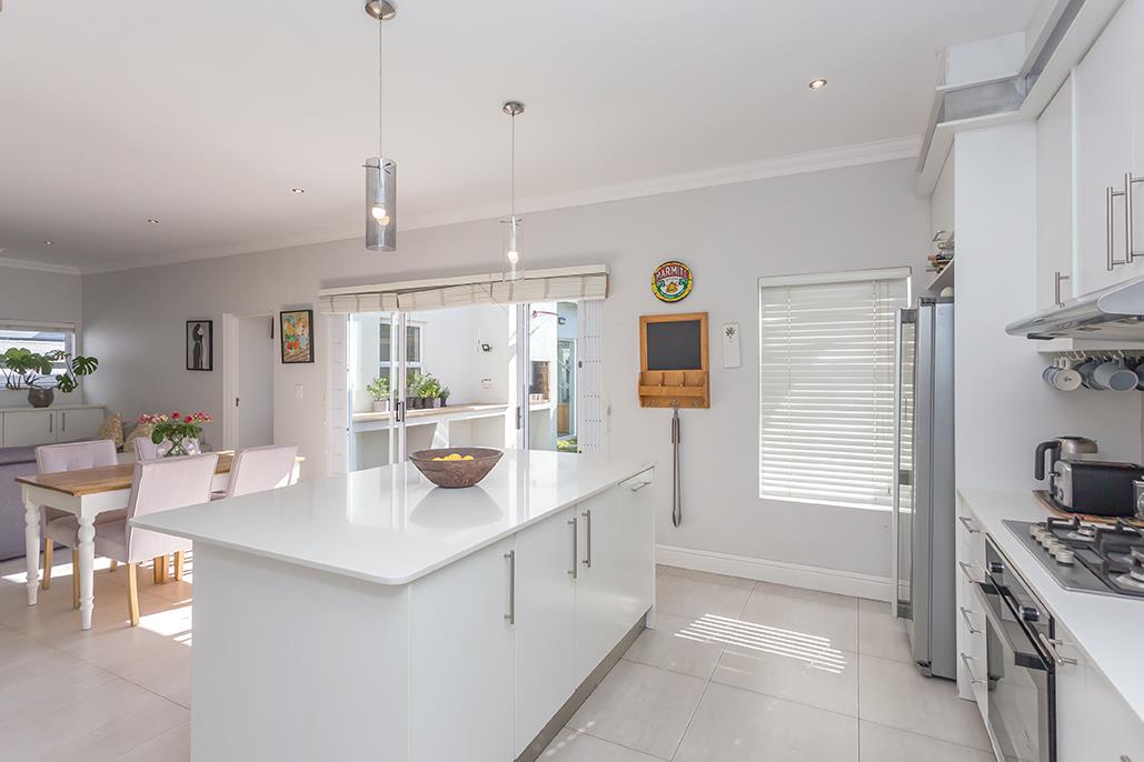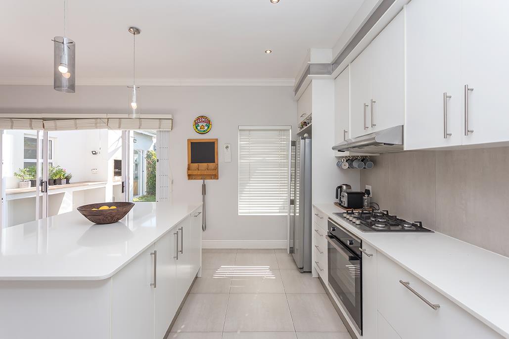 Primary access to the beautifully maintained garden is available from both the lounge and kitchen through large sliding doors. The outdoor area is perfect for entertaining, featuring a built-in braai and plenty of space to relax and enjoy the fresh air.