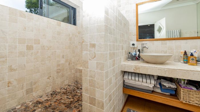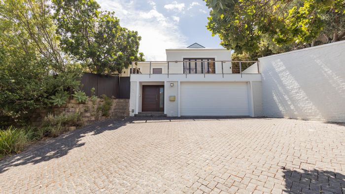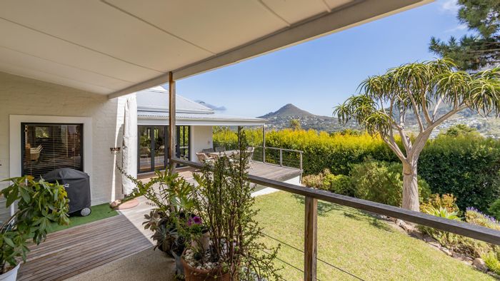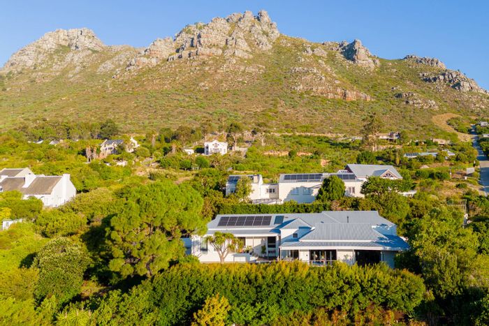 Eco-friendly home in Hout Bay Valley with open-plan living, four bedrooms, guest suite, and private pool.