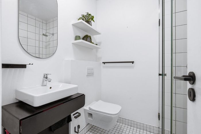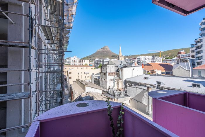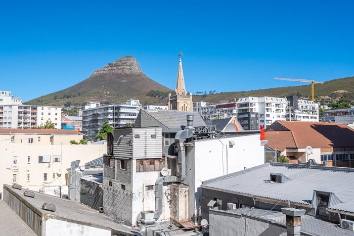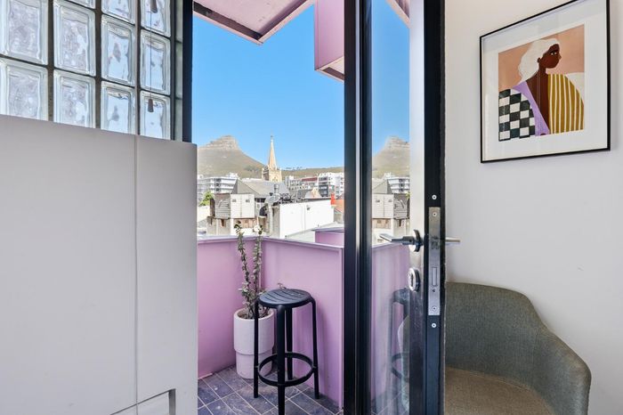 Live vibrant city life between Loop and Bree Streets, steps from Bree and Kloof's eateries. Loft-style apartment with mezzanine bedroom, terrazzo counters, balcony views of Table Mountain and Lion's Head.