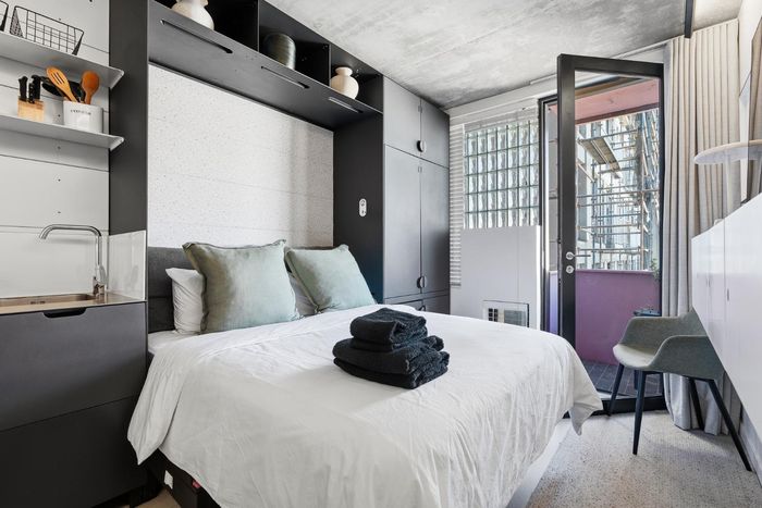 Vibrant Long Street lifestyle in a fully furnished micro-studio, walkable to Bo-Kaap and V&A Waterfront. Private balcony with city skyline and Lion’s Head views; Airbnb-ready, bathroom included.