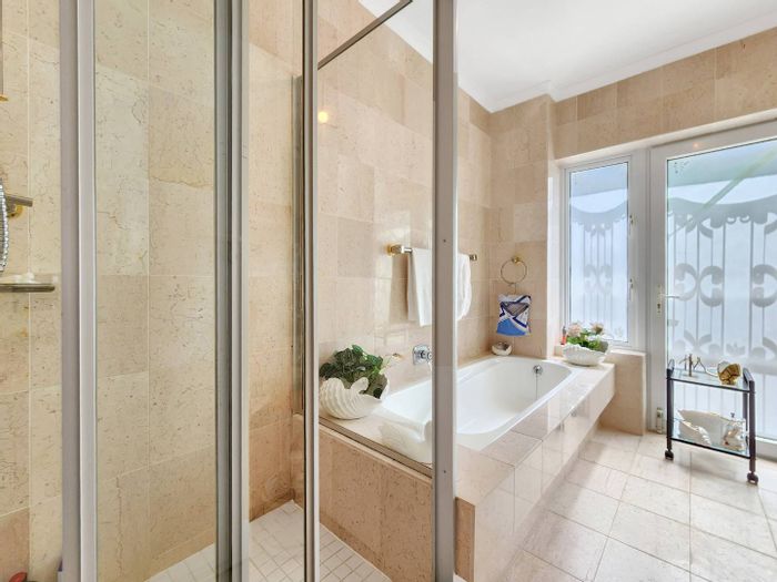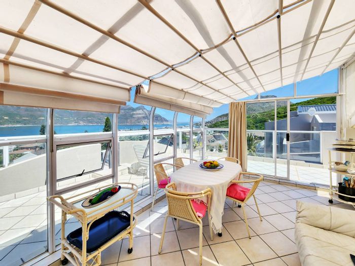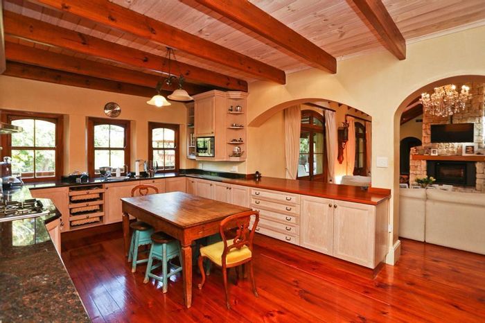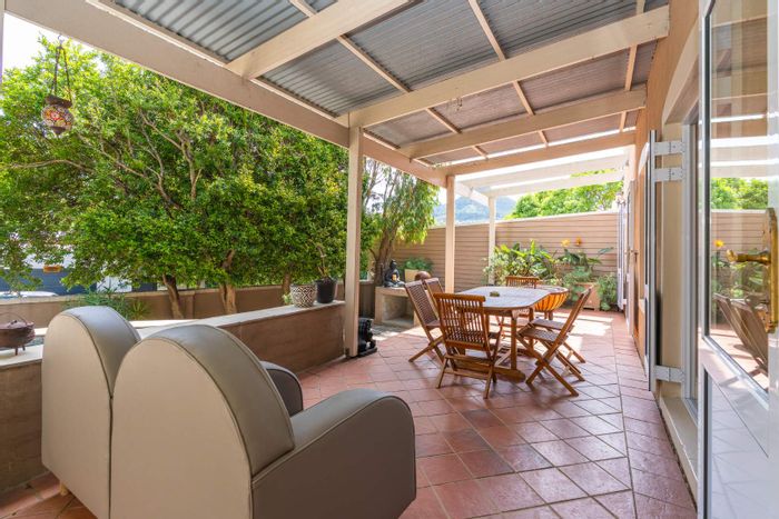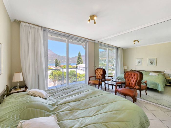 Embrace mountain-slope living on Table Mountain's southern slopes with Hout Bay valley views, Mediterranean home featuring expansive entertainment deck and solar-heated pool; five bedrooms, four baths, three garages.