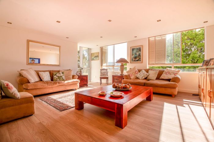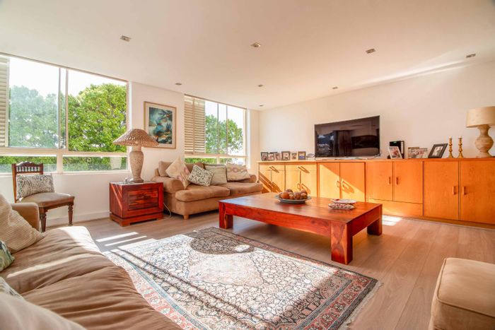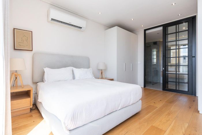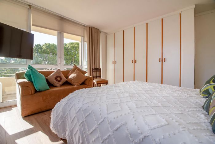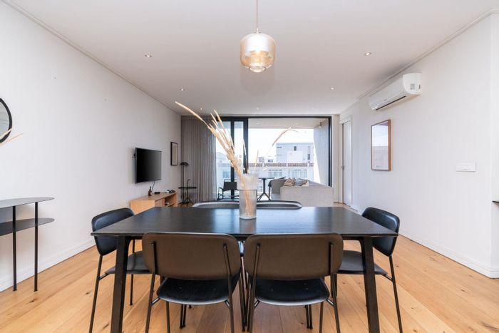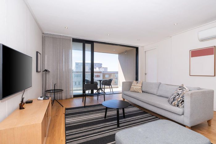 Designer-renovated luxury apartment offering sunlit open-plan living and balcony, pool and 24-hour concierge — walk to Green Point Park, seafront and restaurants; 3 beds, 3 baths, parking.