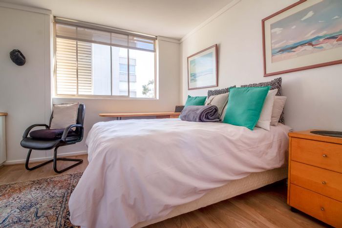 Steps from the Sea Point Promenade, this compact coastal apartment offers secure living, neat kitchen, built-in bedroom storage and a rare lock-up garage — ideal for investors or Airbnb hosts.