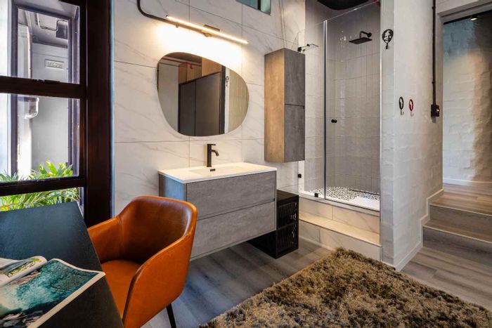 Live, work and entertain in the heart of Gardens, walking distance to Bree, Kloof and Long Street; industrial-chic ground-floor apartment with dual-purpose zoning, ensuite, and secure parking.