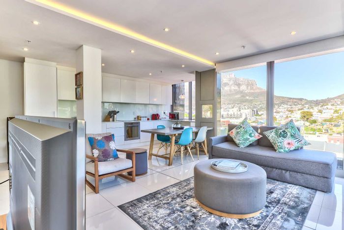 Wake up to Table Mountain views and easy urban living, entertaining on a sunny patio adjoining an industrial-style kitchen — four bedrooms and two bathrooms, available May–Dec.