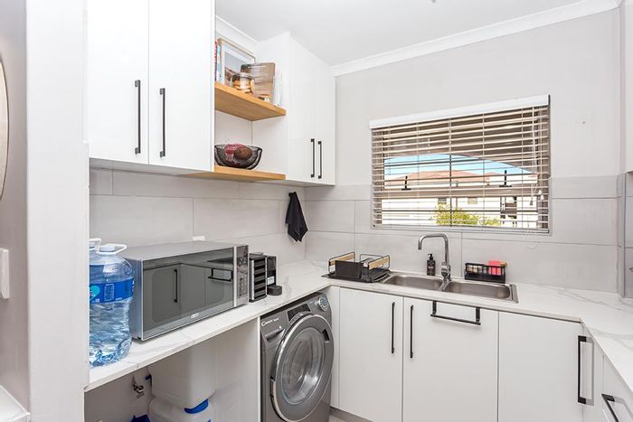 Embrace social, worry-free retirement in De Plattekloof Estate with communal dining, walks and heated pool; private terrace with stack-back doors and distant Table Mountain views. Two en-suite bedrooms, single garage.