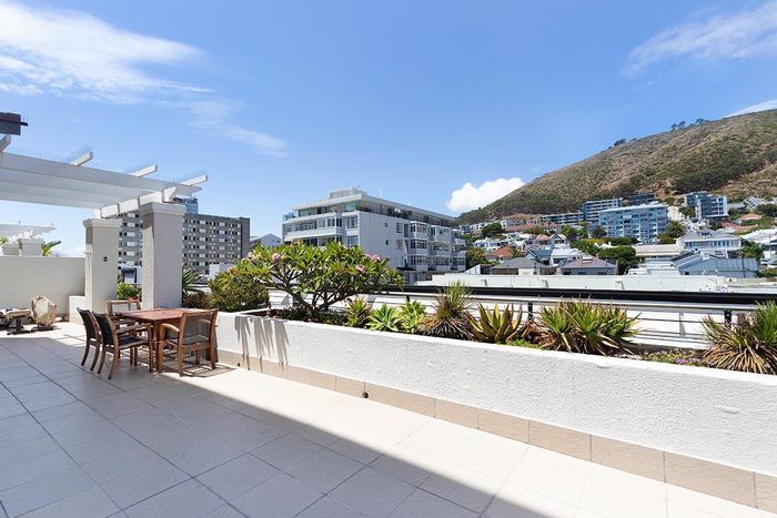 City-edge penthouse between Cape Town CBD and Bo-Kaap, steps from Tamboerskloof/De Waterkant — open-plan living with balcony and upstairs deck, European finishes, aircon throughout; 2 beds, 2 baths, secure parking.