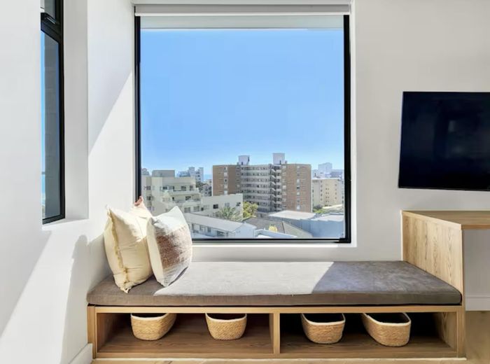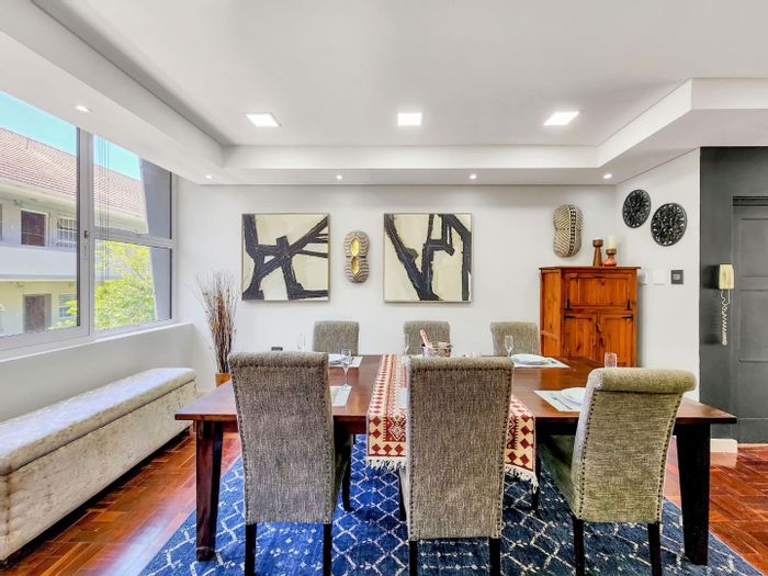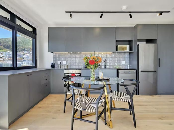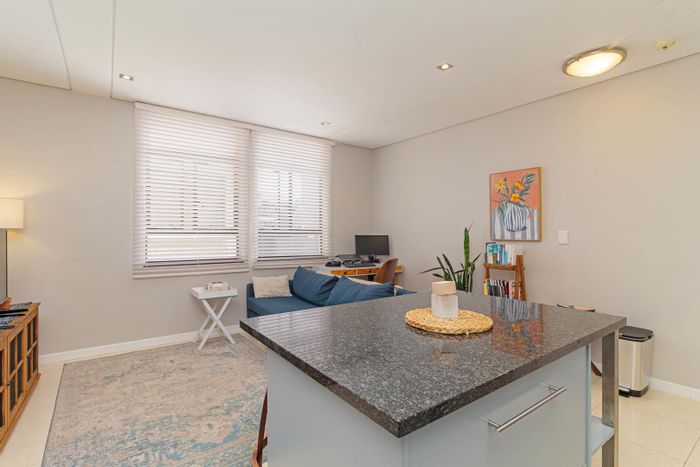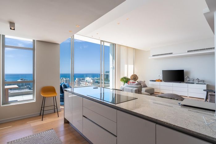 Sunlit urban living in vibrant Vredehoek, balancing convenience and calm; two expansive balconies with city views, modern Caesarstone kitchen, two en-suite bedrooms and garage.