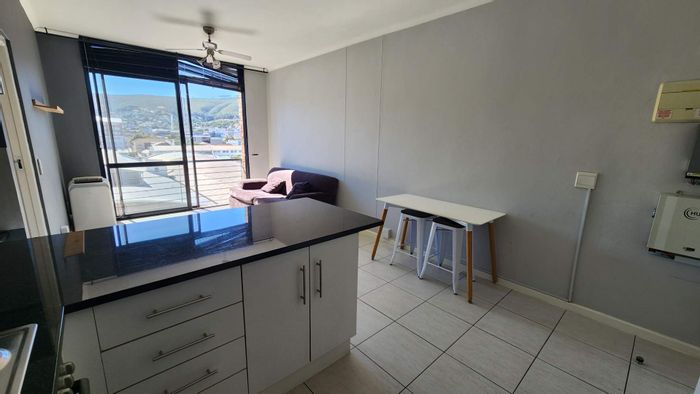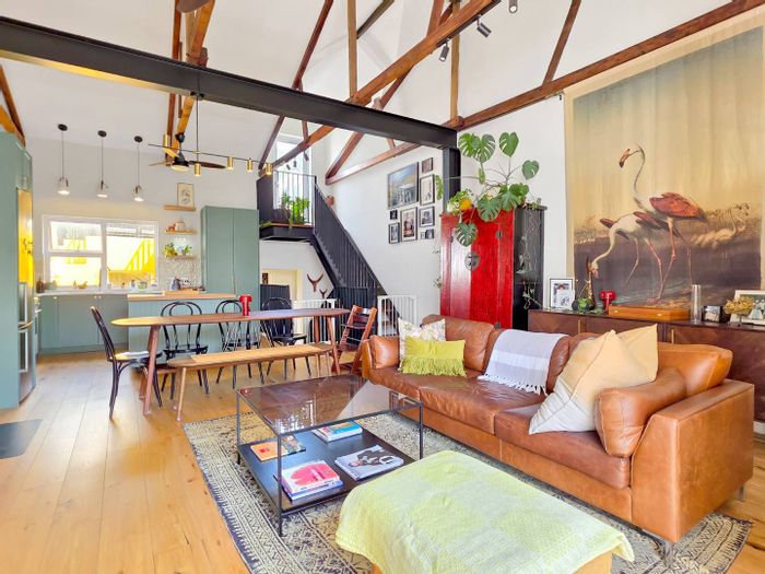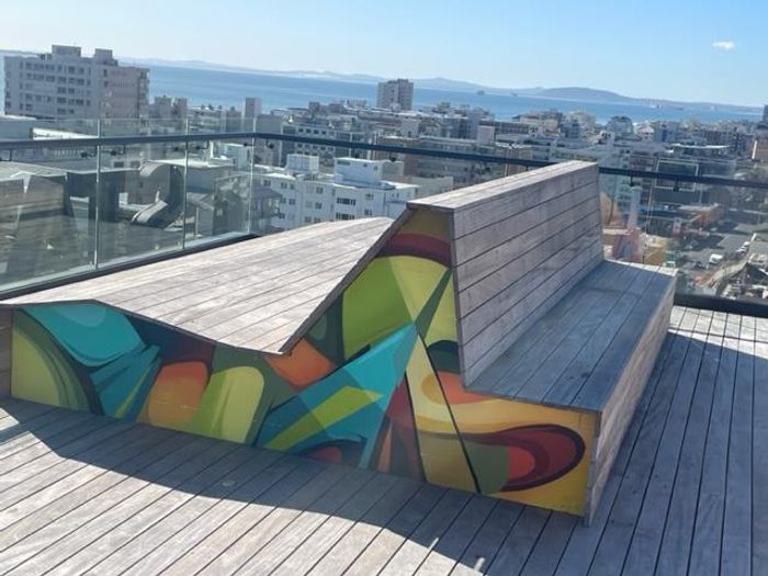 City-edge living with panoramic Table Mountain and Lions Head views from rooftop terrace with braai and outdoor shower. Heated plunge pool, sunny balcony, three bedrooms, 2.5 baths.