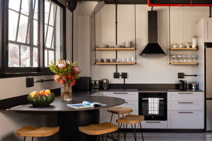 Live in the heart of Cape Town's vibrant city centre, steps from Bree and Long Streets — full-floor Art Deco penthouse with wrap-around balconies and 360° views; one bedroom, one bath.