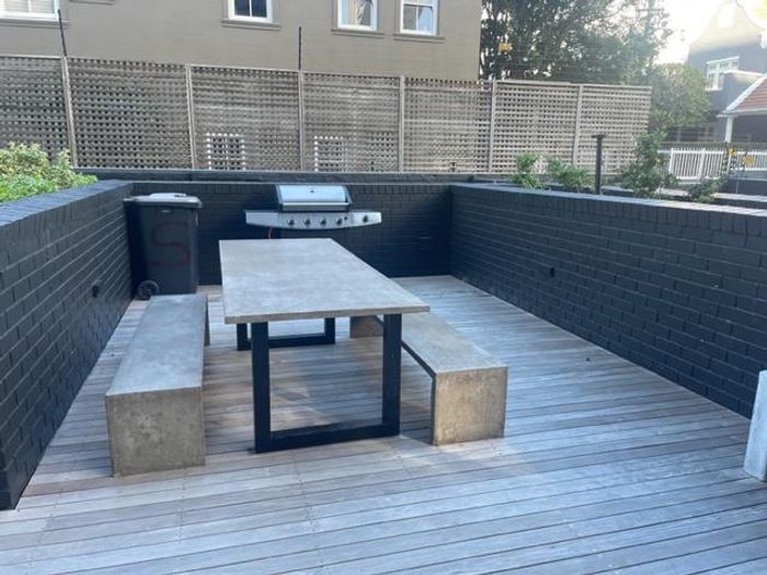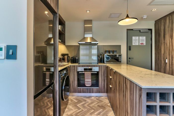 Effortless urban living with on-site dining and rooftop pool; fully furnished two en-suite bedrooms with balconies, modern Smeg kitchen, one covered parking, and guaranteed no load-shedding.