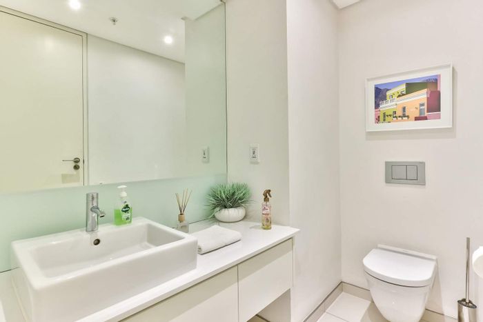 City-centre living with direct Table Mountain views from lounge and bedroom, generous living area with dedicated home-office nook, neat kitchen, one bedroom, 1.5 bathrooms and secure parking.