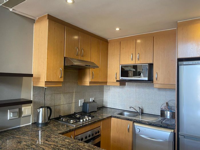 Relax in peaceful Gardens living near MT Nelson and central action, top-floor two-bedroom, one-bath with modern kitchen, Table Mountain views from lounge and main bedroom, plus single auto garage.
