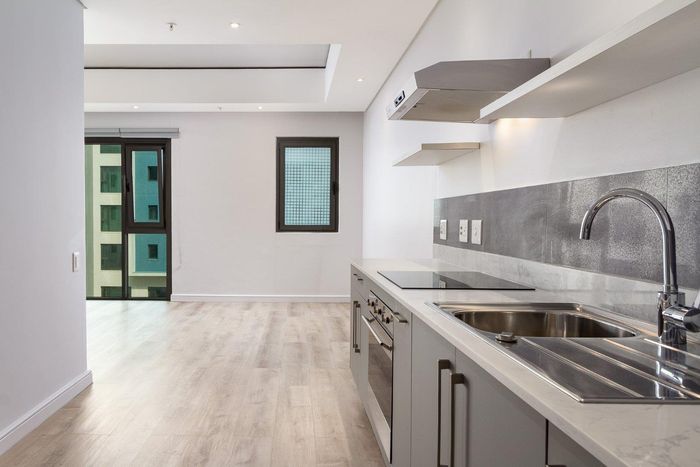 Vibrant city living with easy highway and MyCiti access, rooftop 360° viewing deck and on-site gym — unfurnished one-bedroom, one-bath apartment with secure basement parking.