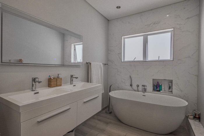 Relaxed coastal living in Sunset Beach, Cape Town, with effortless indoor-outdoor flow, rooftop deck for sunset gatherings and pool — four bedrooms, 3.5 bathrooms and double garage.