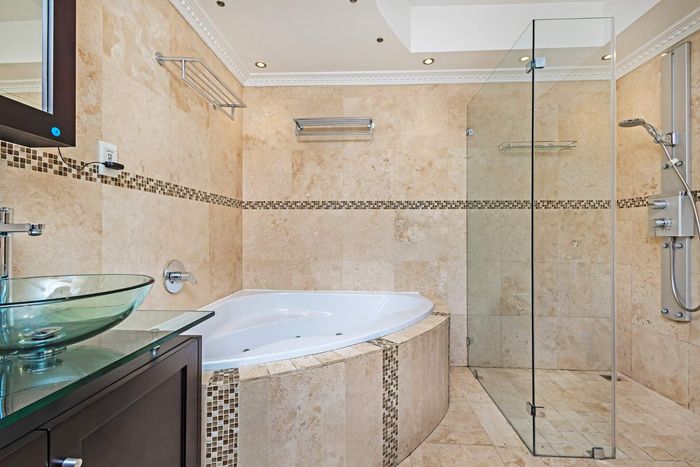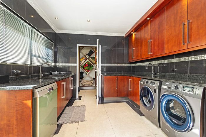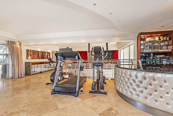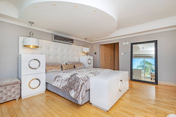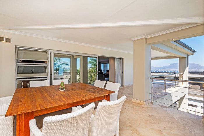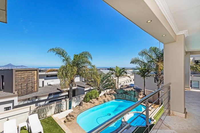 Entertain with skyline sunsets and sweeping Table Mountain views in Baronetcy Estate, featuring a sculpted rock pool and private putting green — six beds, five baths.