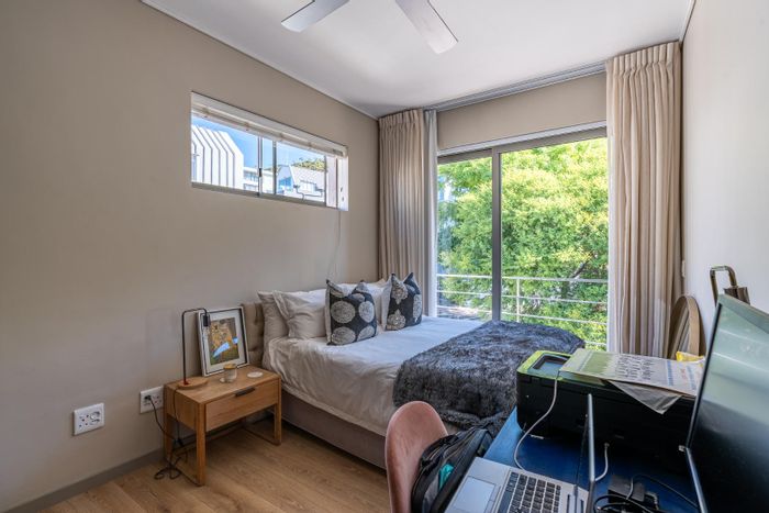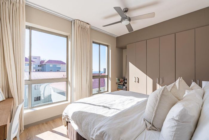 Loft-style living in vibrant Bree/Kloof Street: triple-height ceilings, mid-century modern styling and 28m² entertainer’s balcony with mountain views. Two en-suite bedrooms, open-plan kitchen, strong Airbnb income.