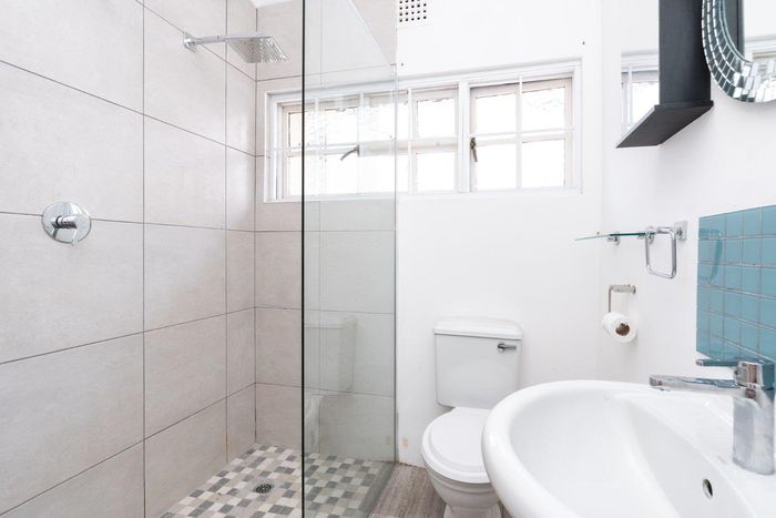 2 bedrooms, 1 bathroom, 1 garage, 102 m² first-floor flat near Fish Hoek Beach with communal garden access.