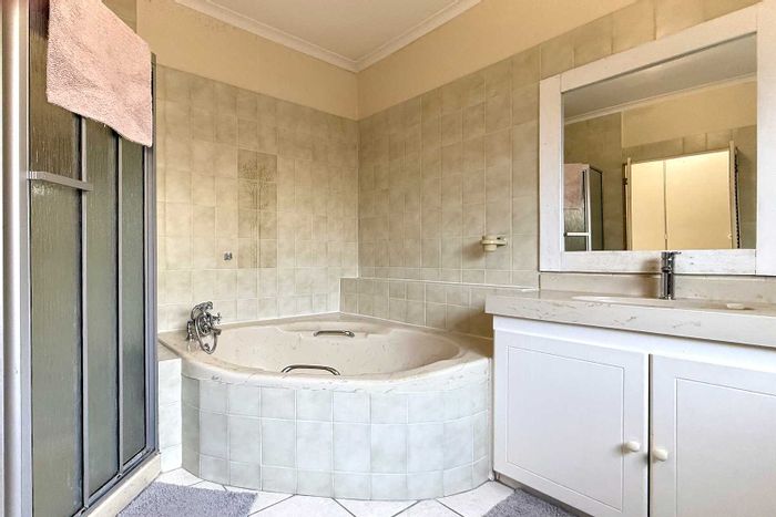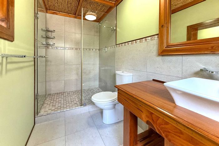 Five bedrooms, three bathrooms, 285 m² floor size, 736 m² land size, double garage, and open parking for three cars.