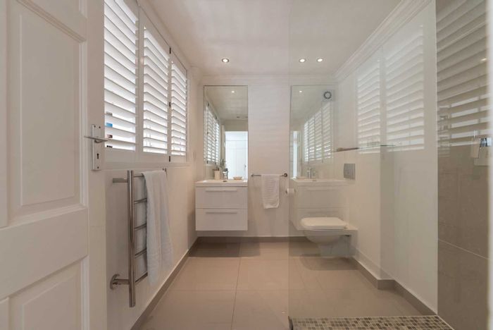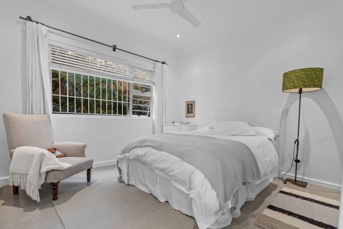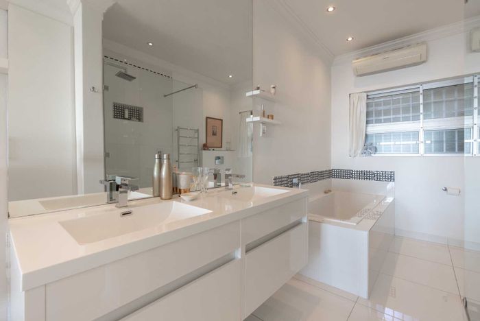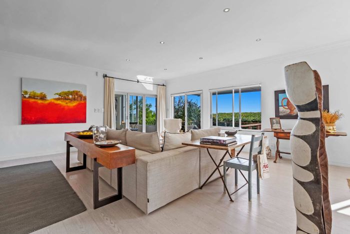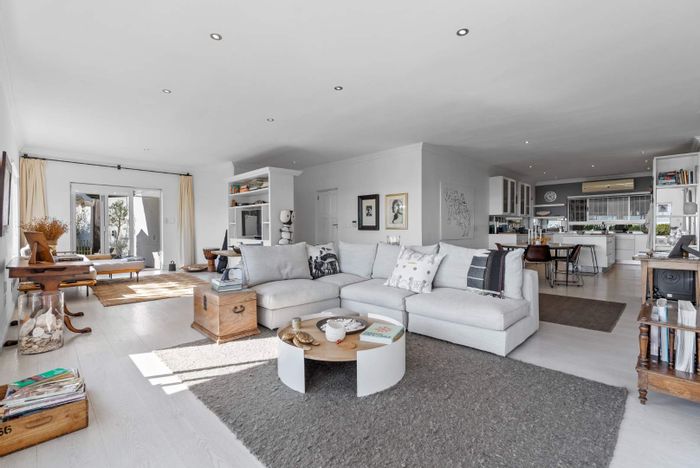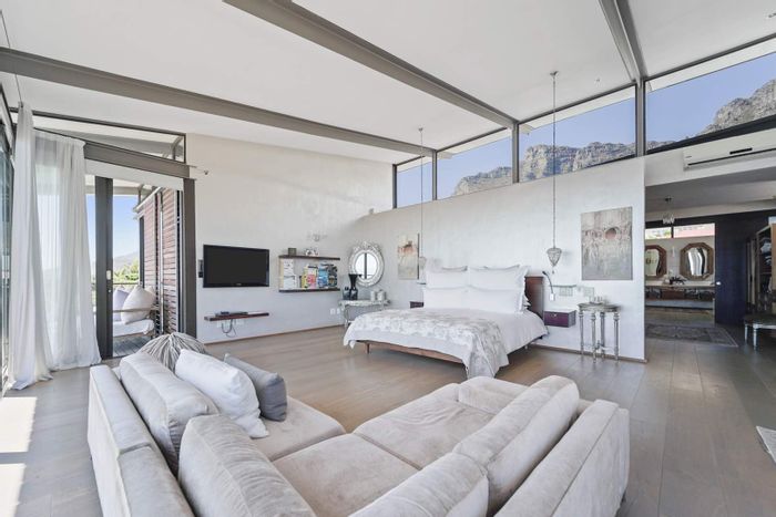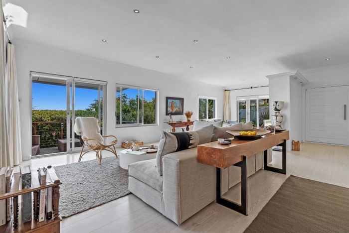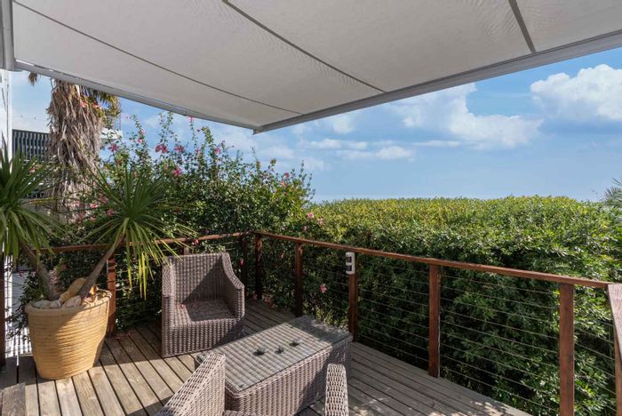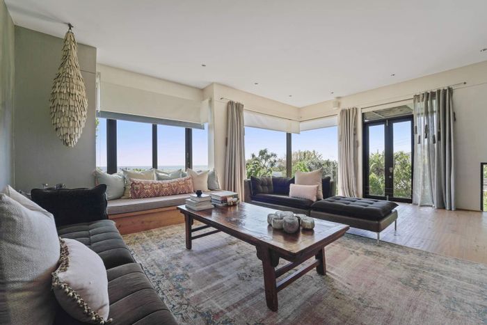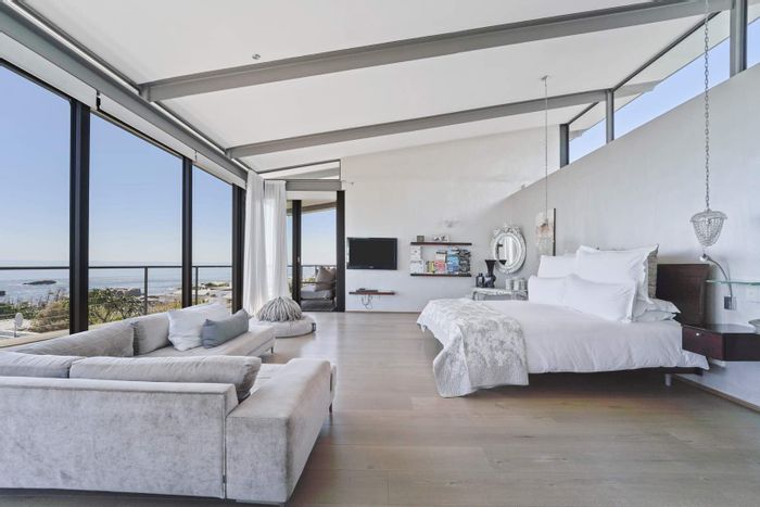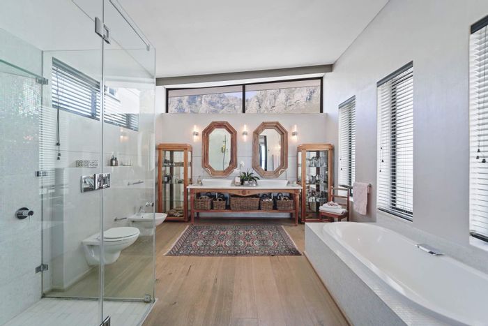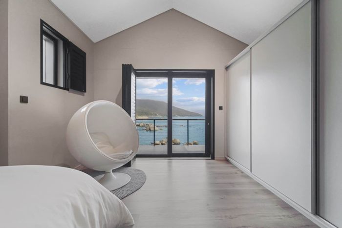 Serene cul-de-sac retreat in exclusive Bakoven, with wraparound balcony showcasing Atlantic and Twelve Apostles views, French Provençal interiors, pool, koi pond, flatlet — five beds, 5.5 baths, double garage.
