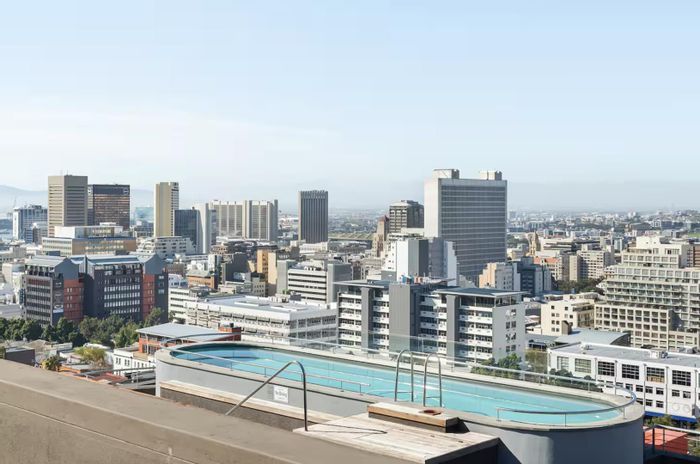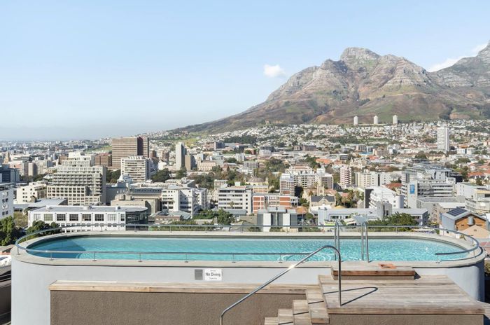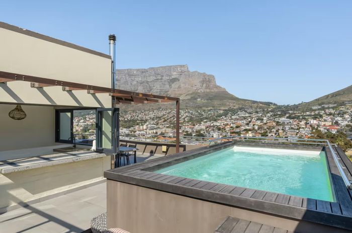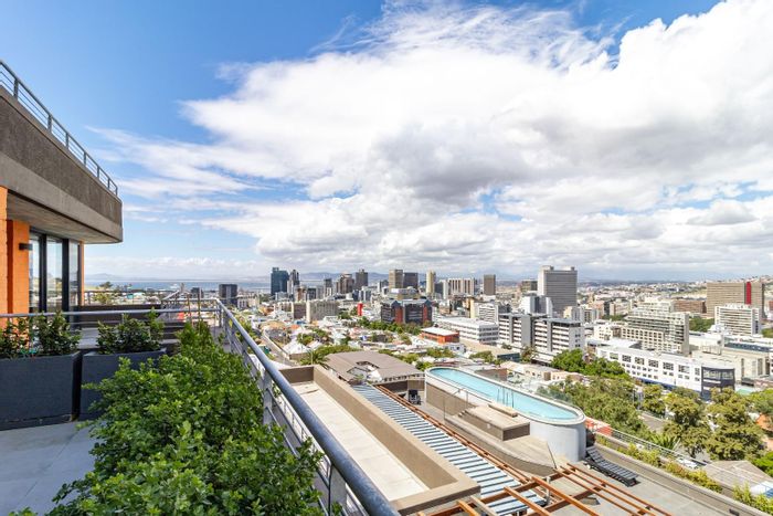Live above Cape Town's vibrant Bo-Kaap with sweeping Table Mountain and city skyline views; corner penthouse features a private rooftop pool, wrap-around terrace, and two ensuite bedrooms.