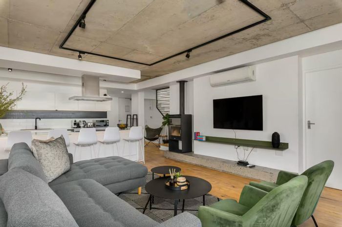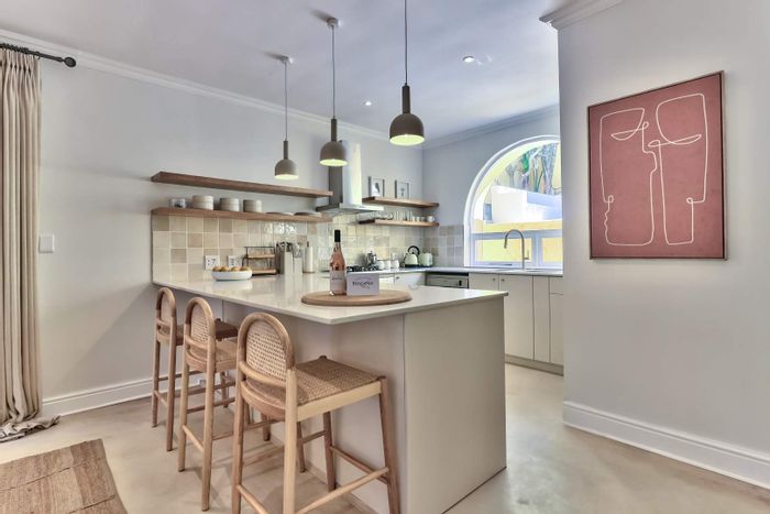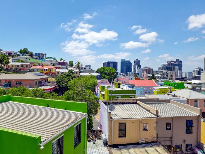 Embrace Bo Kaap's vibrant street life with contemporary heritage living, two verandas framing panoramic neighborhood views, modern open-plan kitchen, three bedrooms and two secure garages.