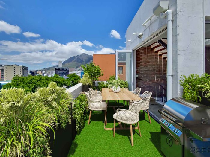 Vibrant Bo-Kaap apartment with 24 m² balcony facing Signal Hill and Lion’s Head, rooftop pool and gym, Airbnb-ready and furnished — 3 beds, 2 baths, 2 parking.