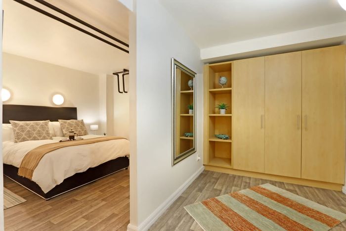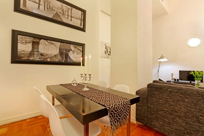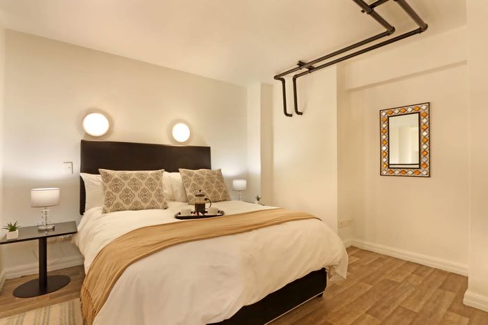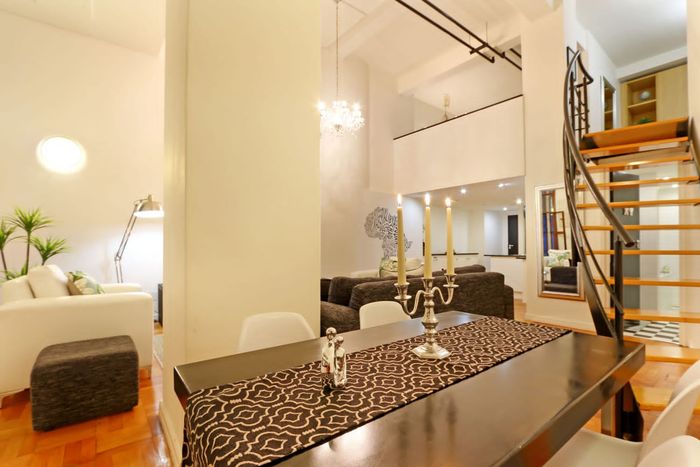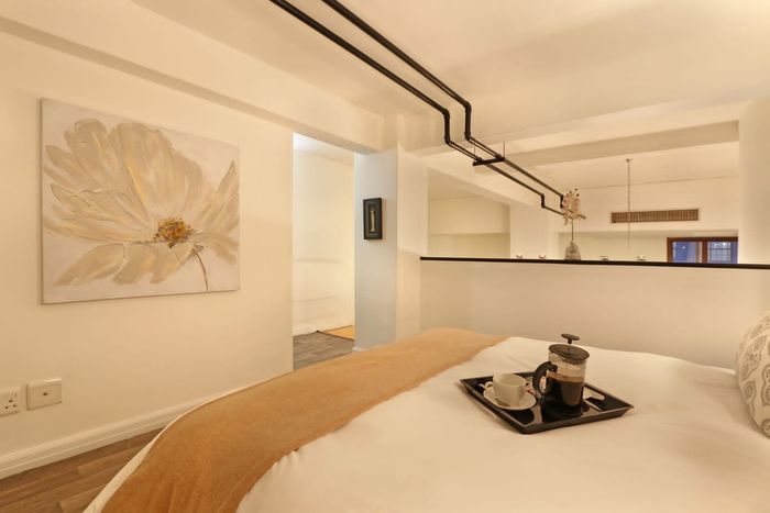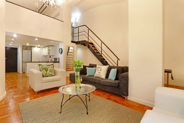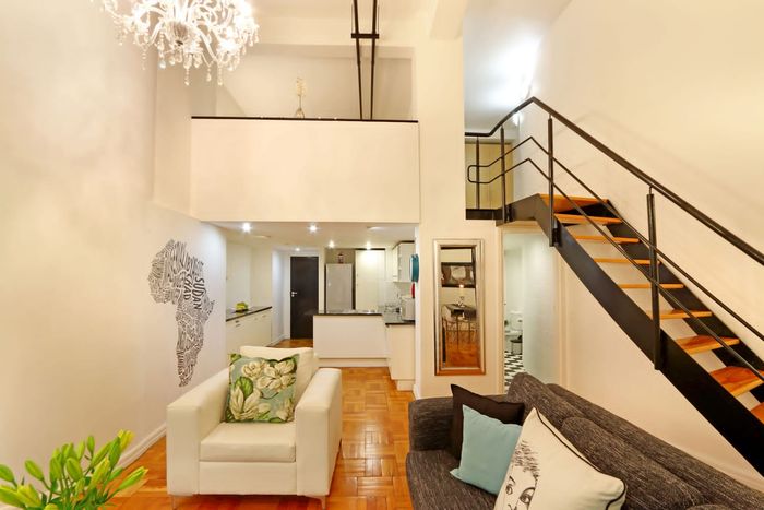 Stylish loft apartment in Mutual Heights, Cape Town CBD, with historic charm, natural light, security, and investment potential. Fully furnished.