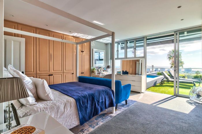 Perched on Signal Hill with panoramic Atlantic and Robben Island views, this renovated multi-level home boasts three self-contained units, pool, lush garden and double garage — five beds, five baths.