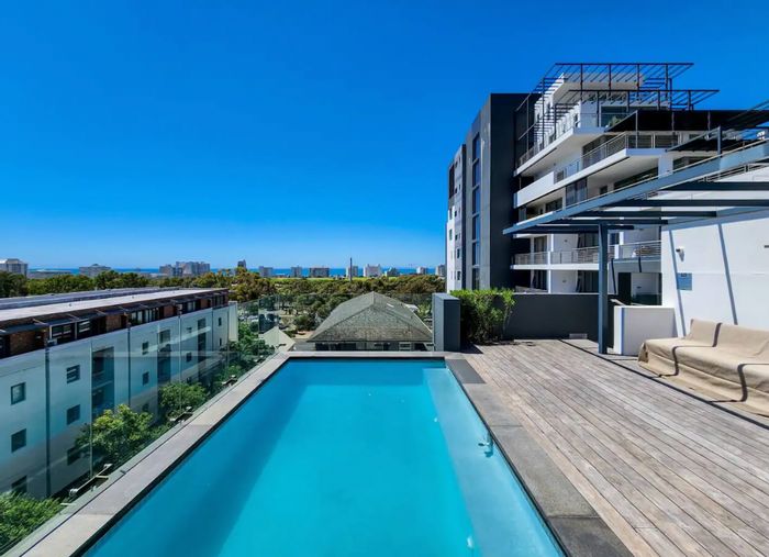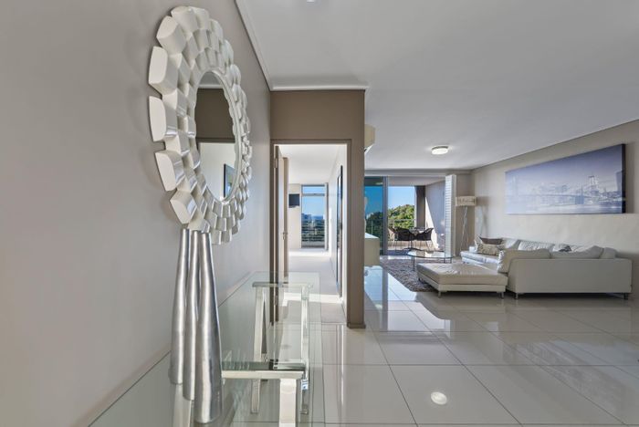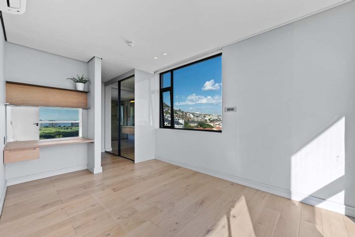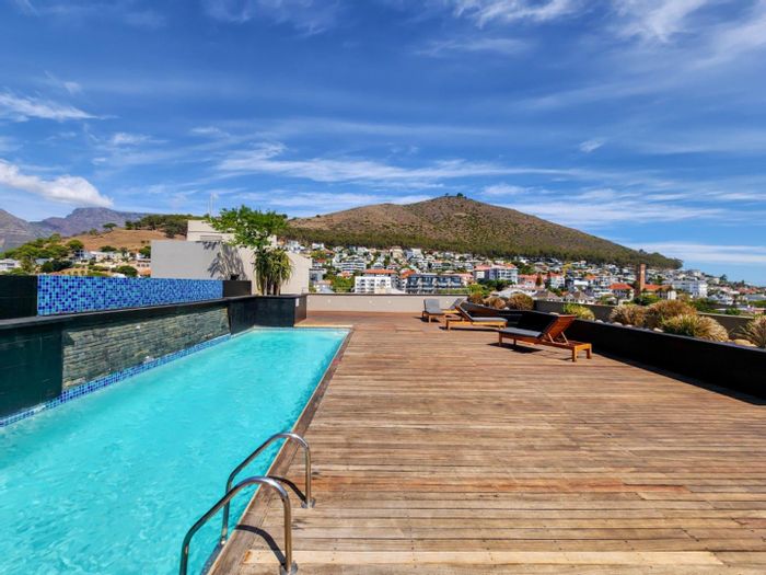 Penthouse in heart of Green Point, footsteps from cafés and top restaurants, with panoramic V&A Waterfront and Atlantic views, private terrace with elevated splash pool; 3 en‑suite bedrooms, 6 parking.