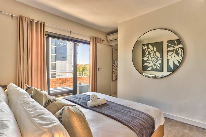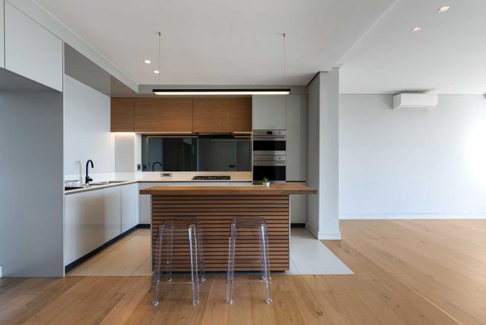 Enjoy waterfront-adjacent Green Point living steps from the V&A, cafés and parks — designer-furnished, turnkey apartment with private balcony showcasing panoramic city and ocean views, two en‑suite bedrooms.