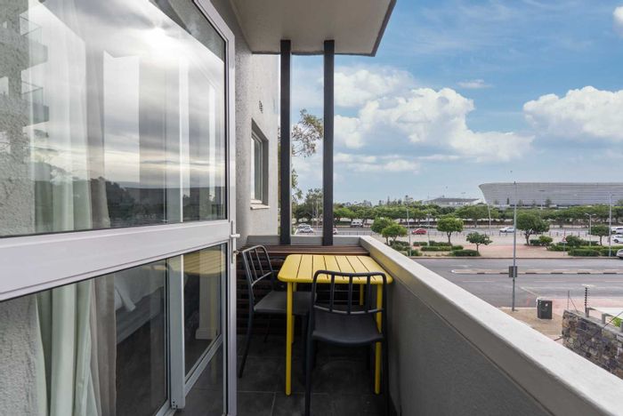Renovation-ready apartment with a 12 m² balcony and ocean views — design your ideal city-base minutes from the V&A Waterfront and Cape Town Stadium, with secure parking and 24‑hour security.