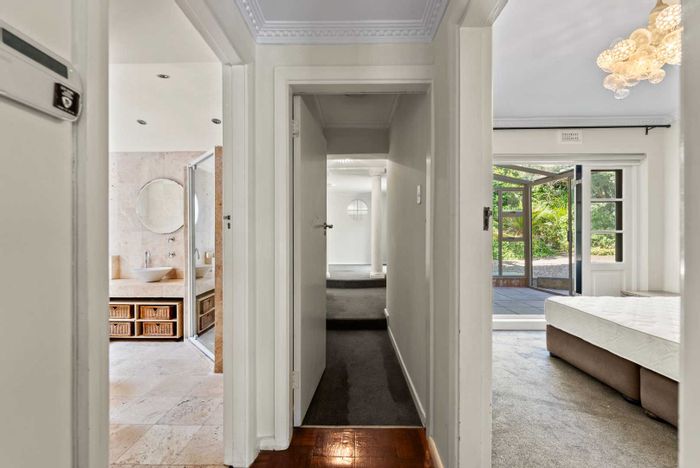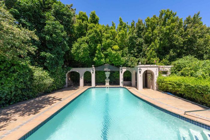 Kerb-appeal on Kensington Crescent overlooking Leeuwenhof — impeccably restored character home with private garden, pool, antique Argentine pharmacy-cabinet kitchen, guest cottage; 4 beds, 3 baths, 2 garages.