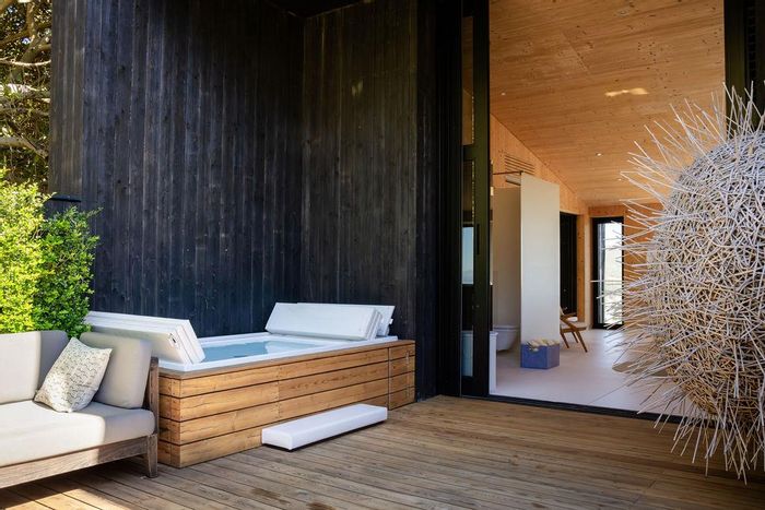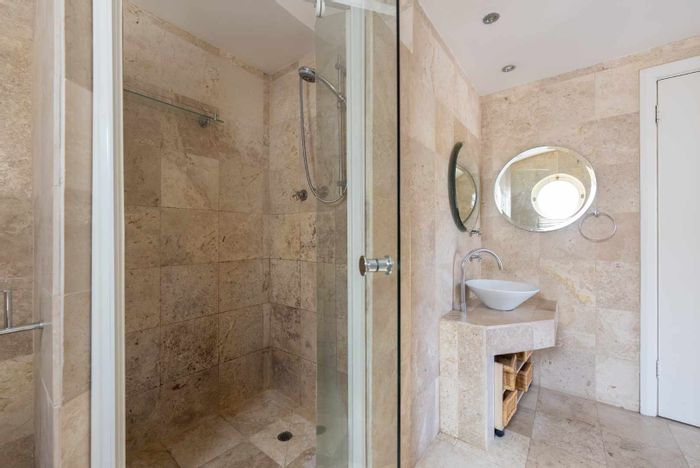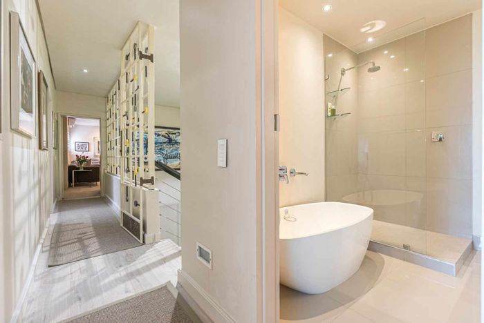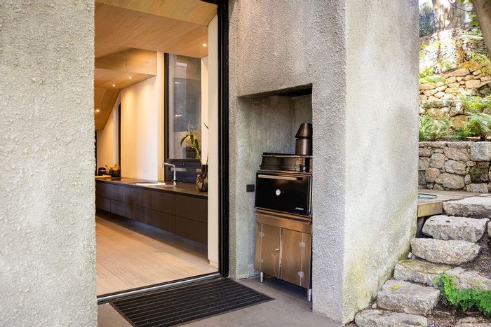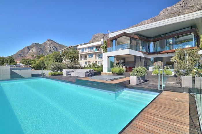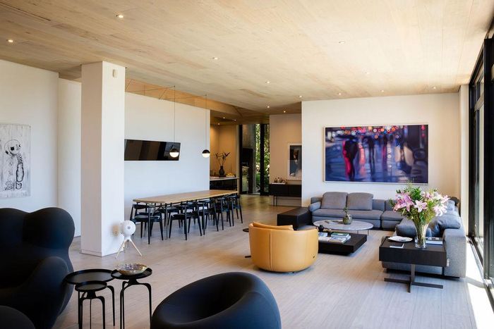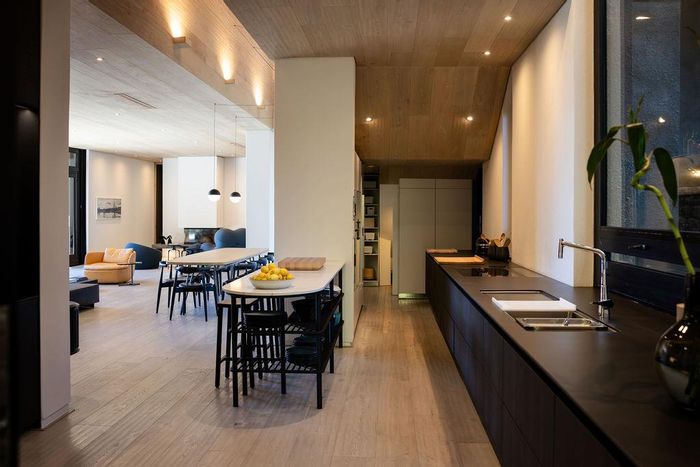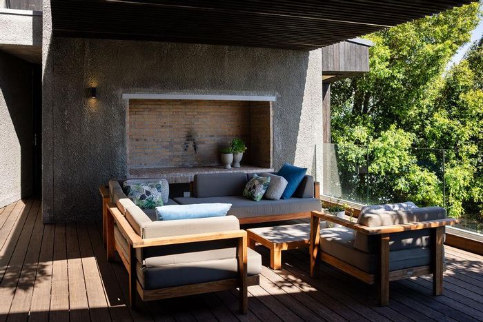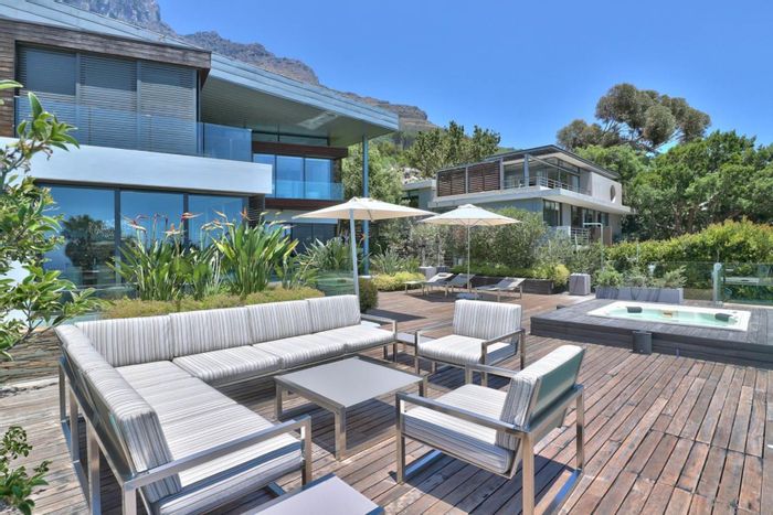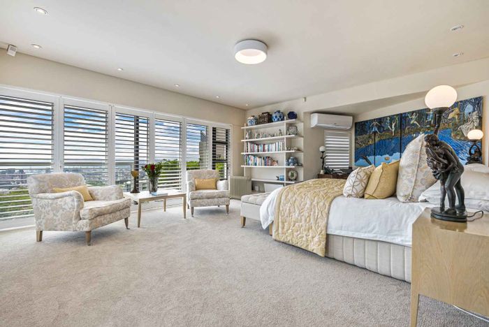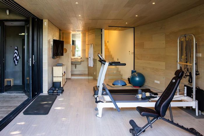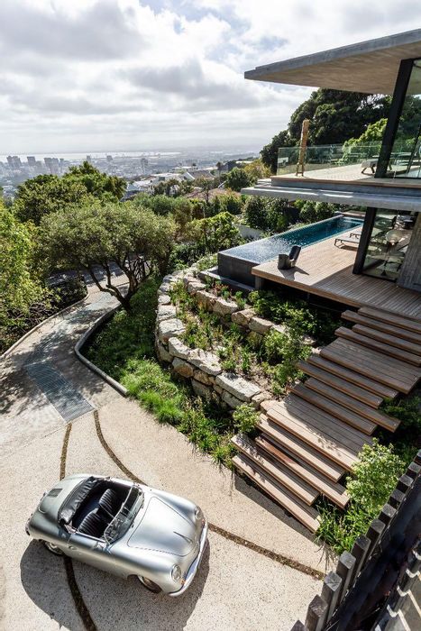 Serene Japandi retreat in an exclusive Table Mountain foothills cul-de-sac, featuring 360° views, Bulthaup/Gaggenau kitchen, 2,400-bottle wine cellar, multiple patios and private spa. 4 beds, 5.5 baths, 4-car garage.