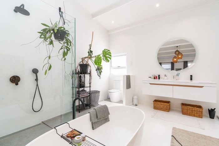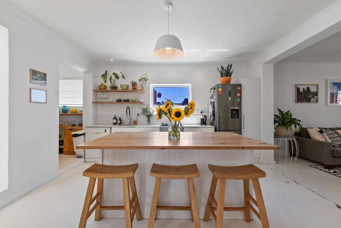 Relaxed Southern Suburbs living near Blue Route Mall and Westlake Golf Club; sun-filled open-plan lounge flows to a private garden with mountain views. Three bedrooms, two bathrooms, single garage.