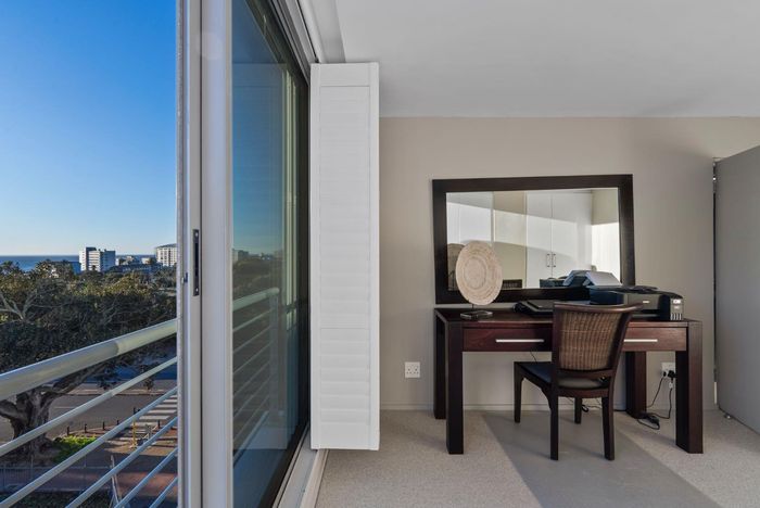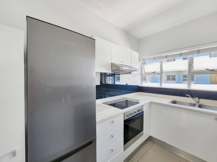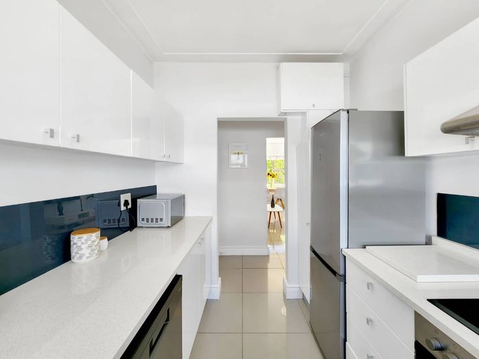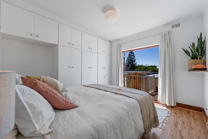 Sun-soaked coastal living moments from Sea Point promenade, offering north-facing light, sea views and Airbnb-ready convenience — two en suite bedrooms, remote lock-up garage included.
