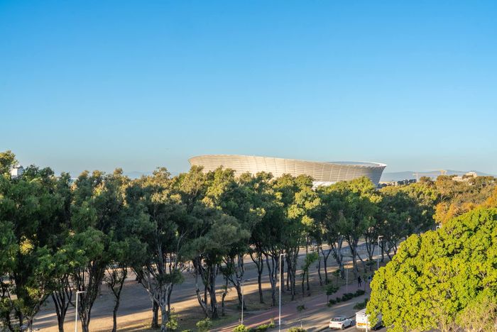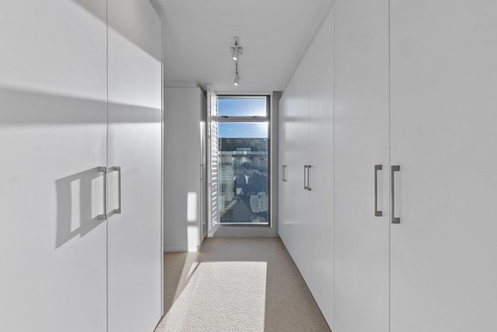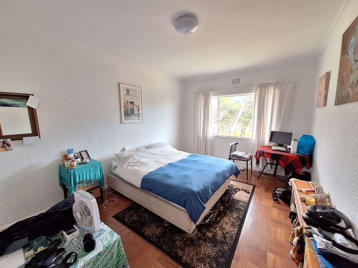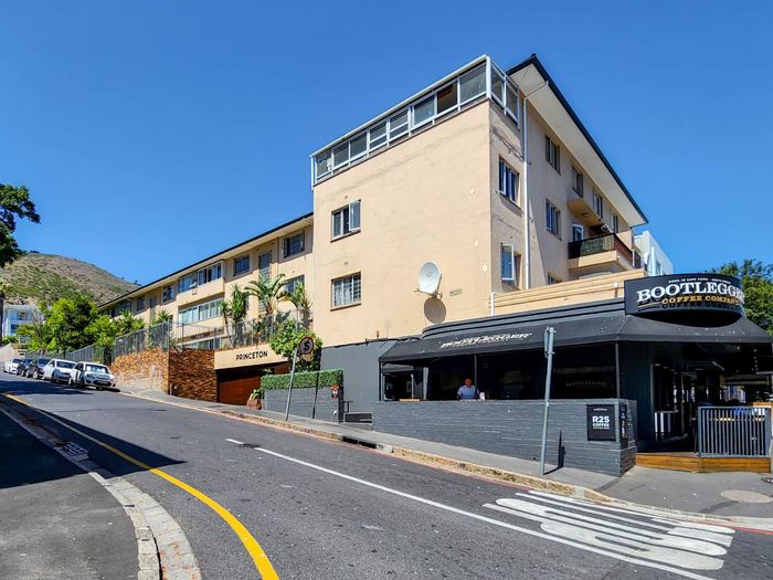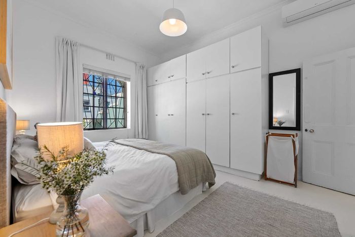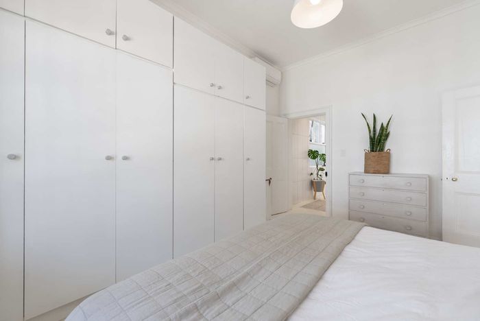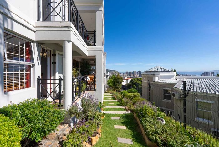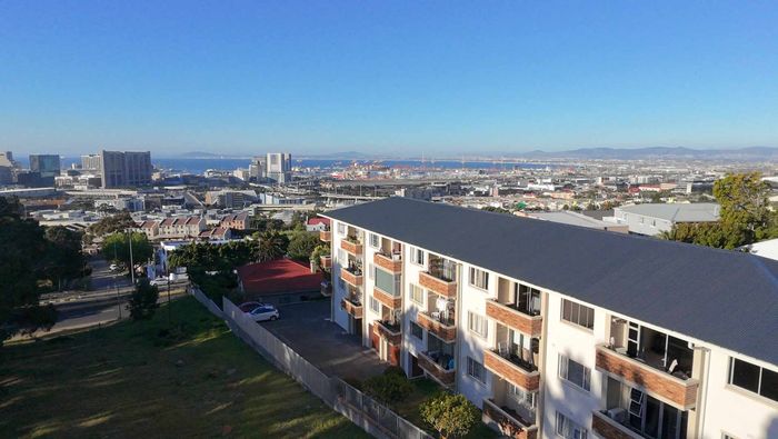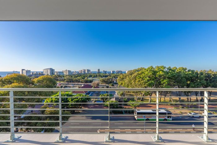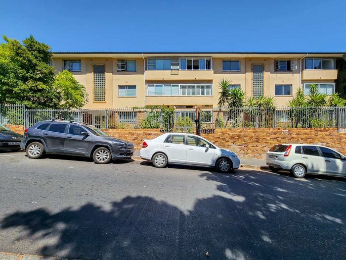 Top-floor living with park-side tranquillity in Vredehoek, balcony overlooking The Plantation's stone pines with sweeping city and mountain views; two bedrooms, one bathroom and extra-large 22sqm garage.