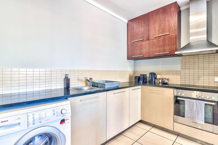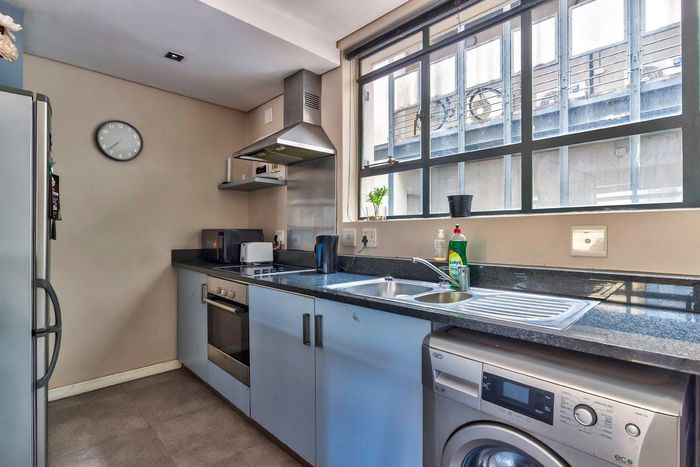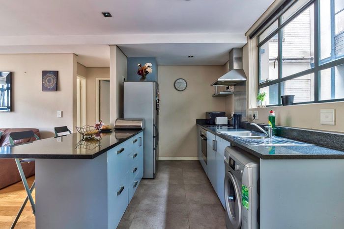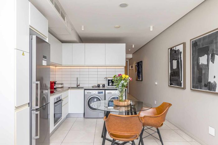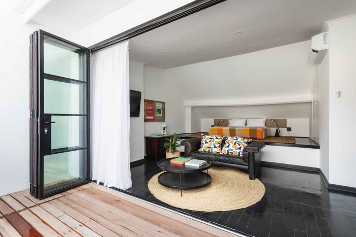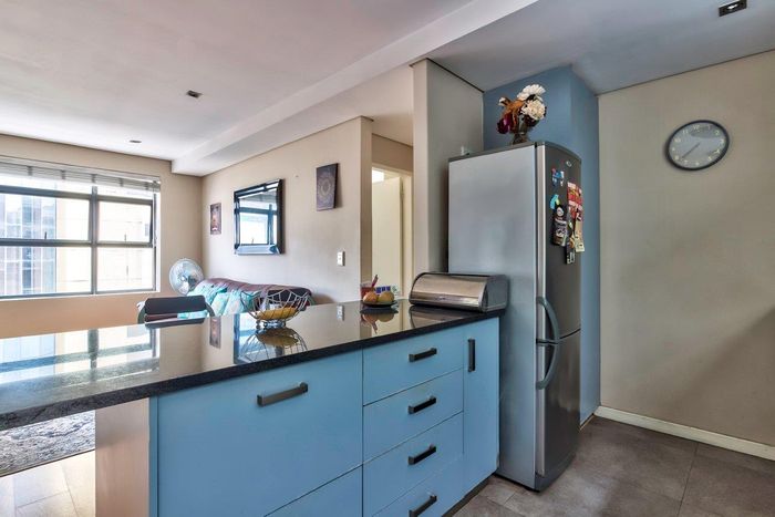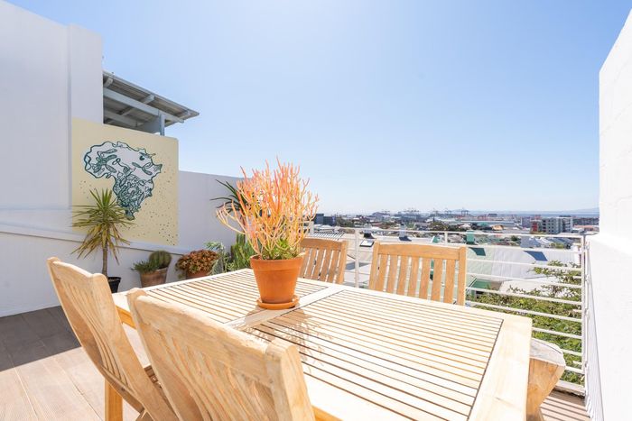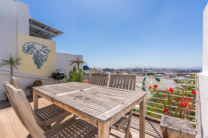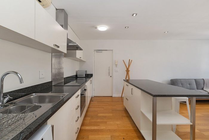 Live in De Waterkant’s vibrant urban playground with sweeping Table Mountain and city views, open-plan designer kitchen, one-bedroom one-bath, secure covered parking — steps from V&A Waterfront.