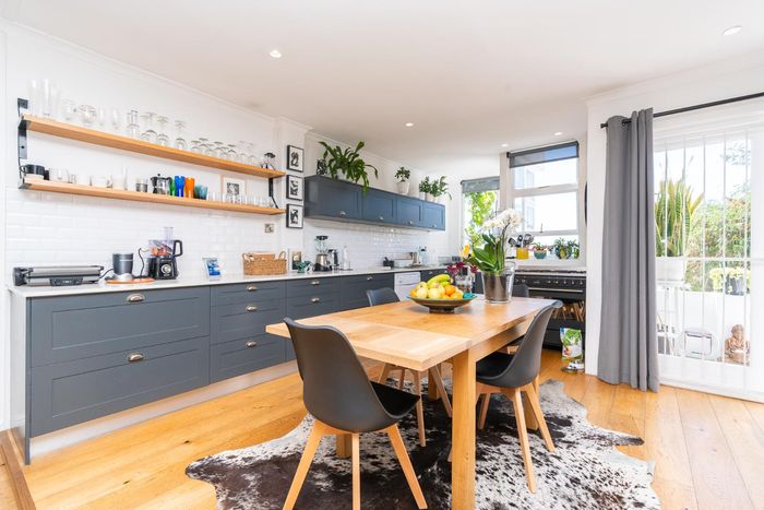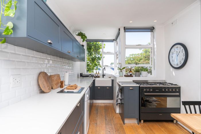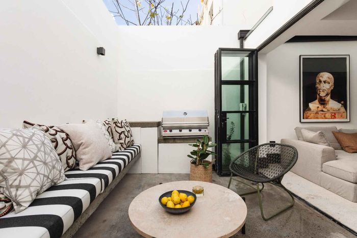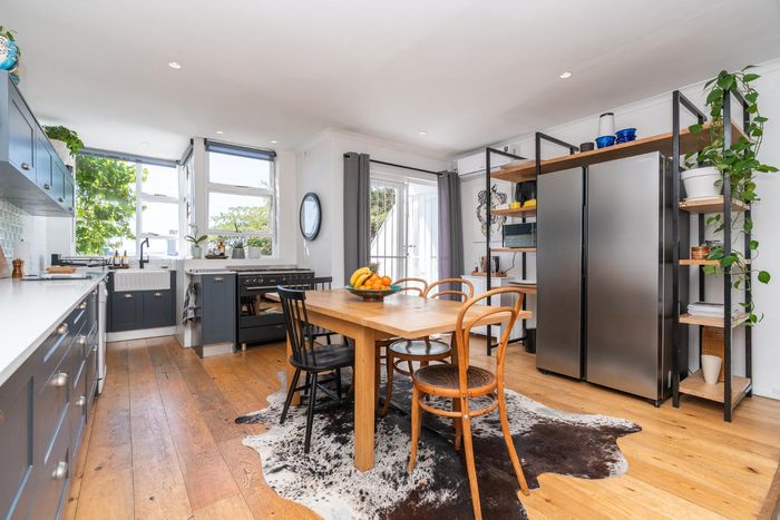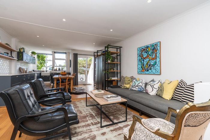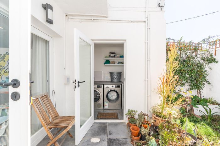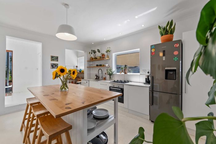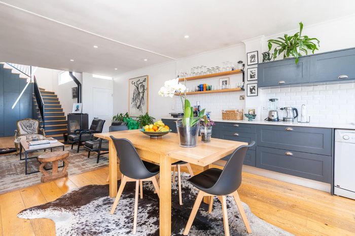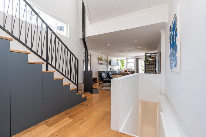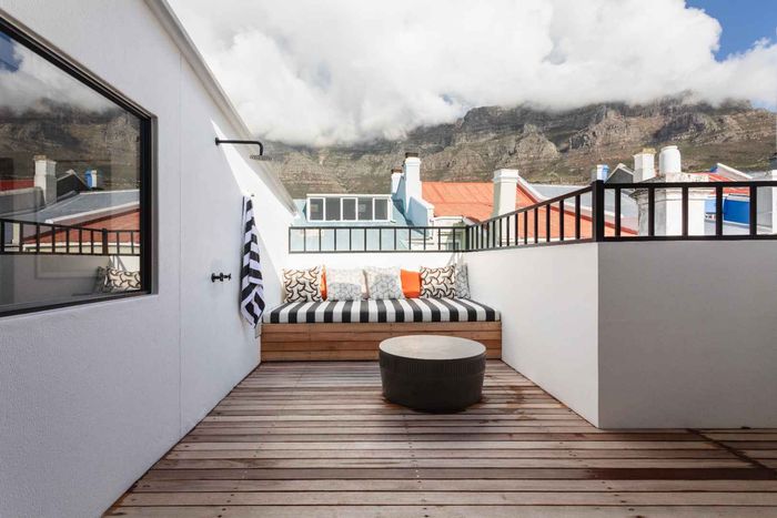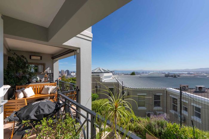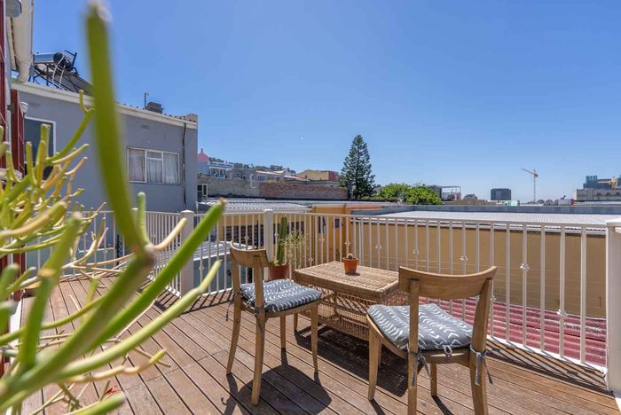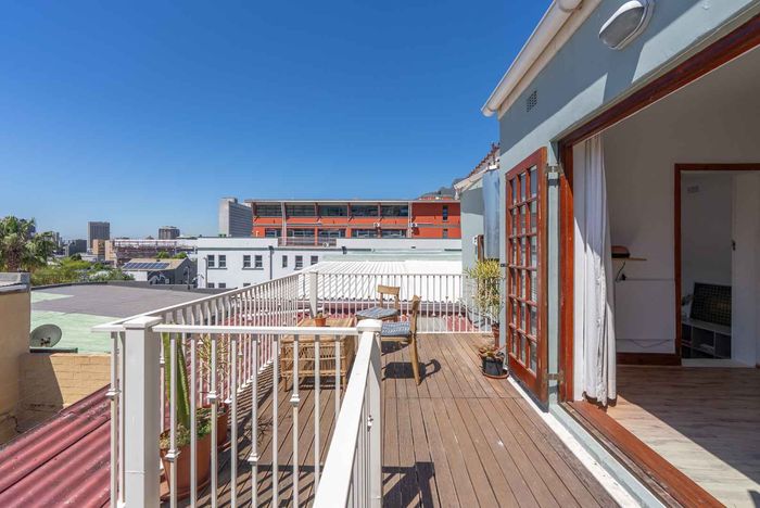 Embrace Bo Kaap's vibrant street life with contemporary heritage living, two verandas framing panoramic neighborhood views, modern open-plan kitchen, three bedrooms and two secure garages.
