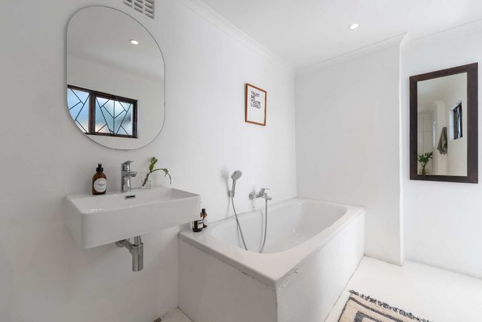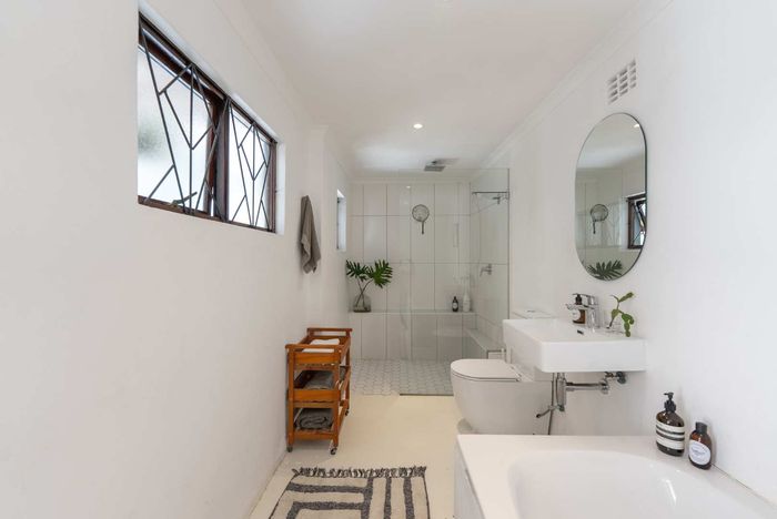 Family-friendly Sybrand Park retreat, 15 minutes from Cape Town, with pool and Table Mountain views; open-plan living, four bedrooms and two baths, oversized single garage — renovation potential.