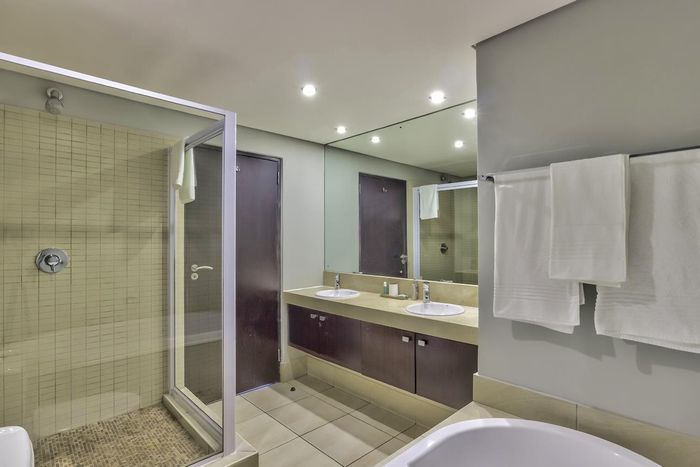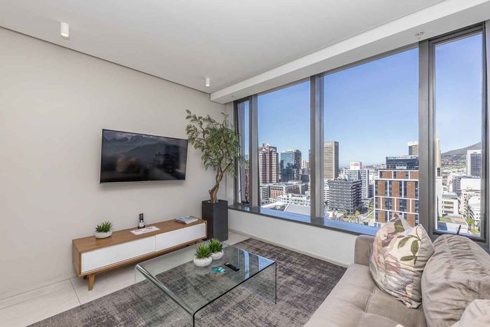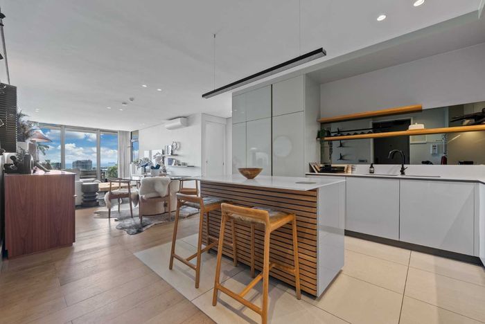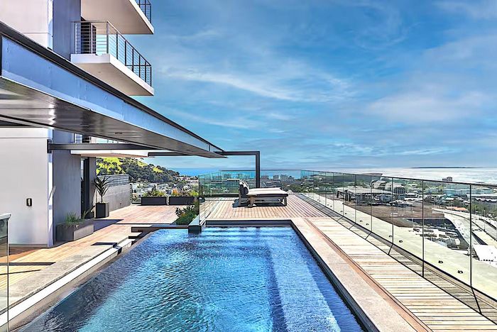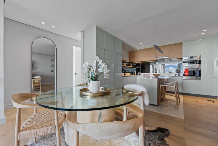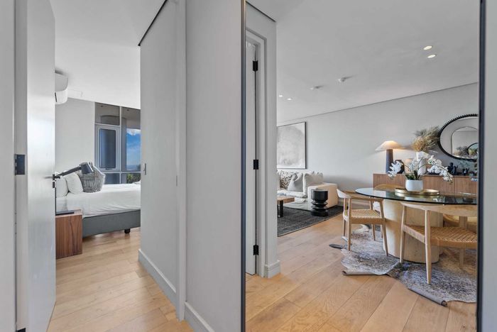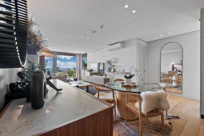 Wake up to panoramic Table Mountain, Lion's Head and harbour views in an elevated design masterpiece with double-volume living and floor-to-ceiling glass—two bedrooms, two baths, two underground parking.
