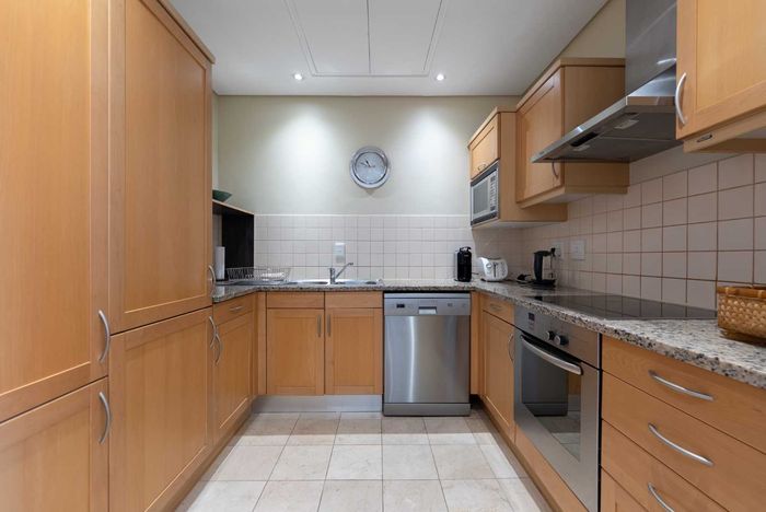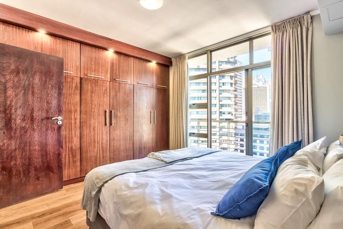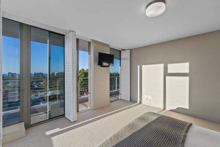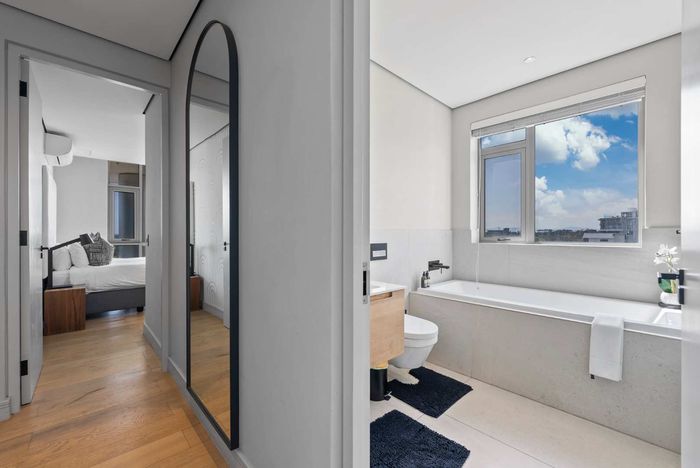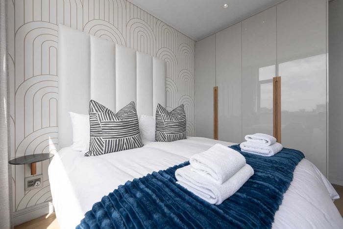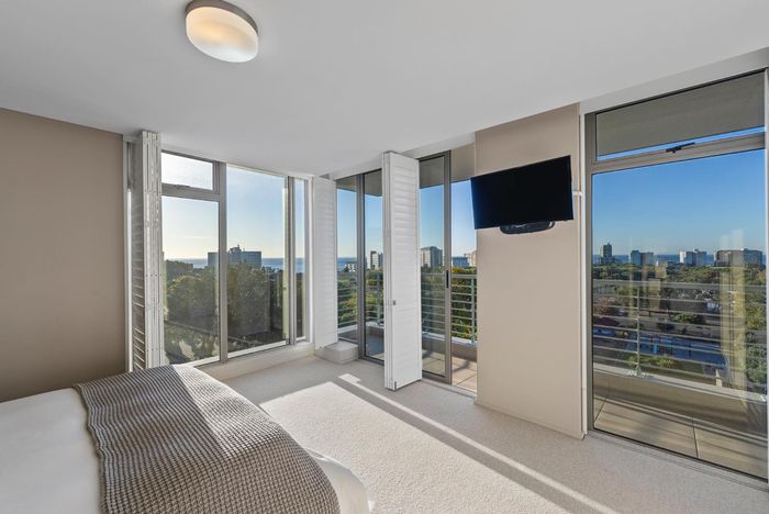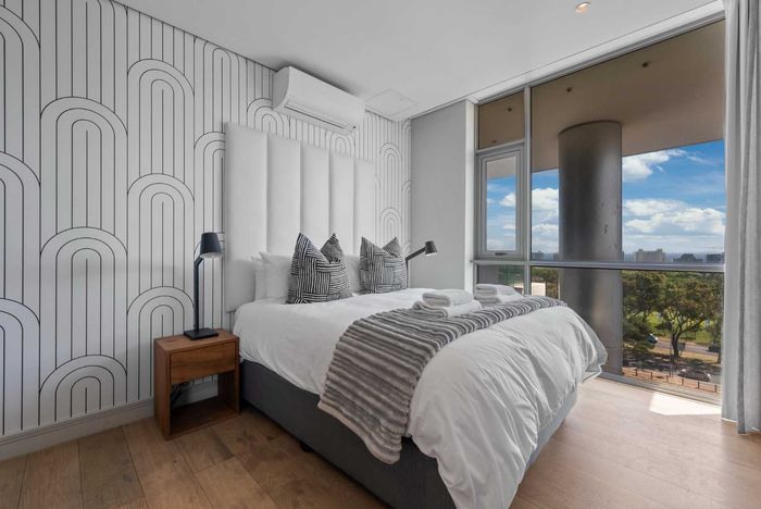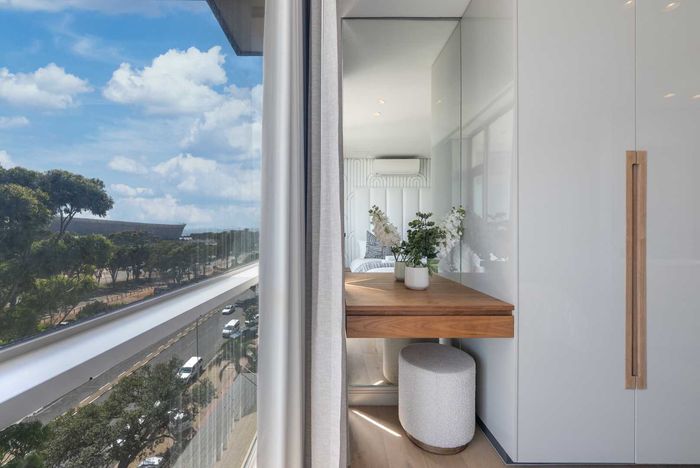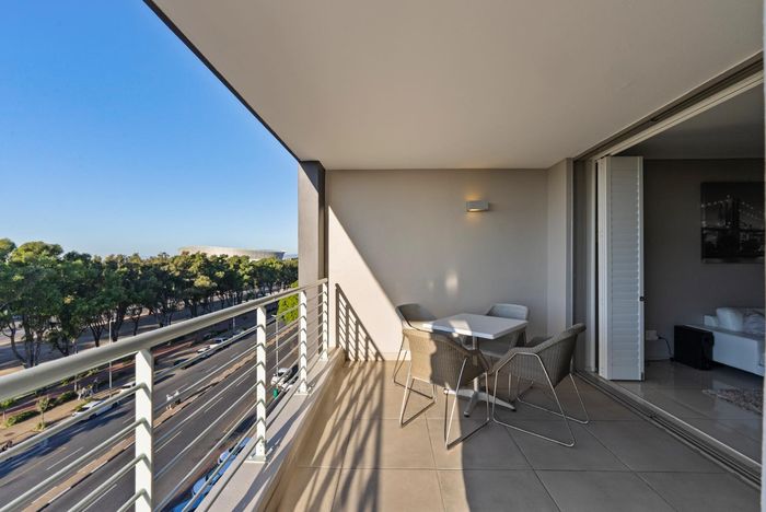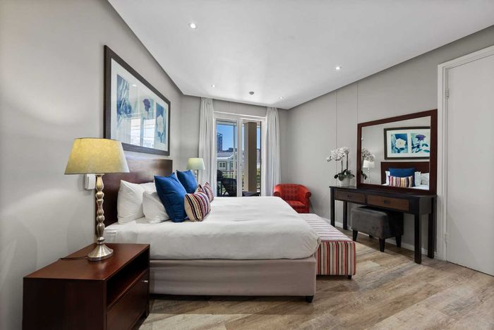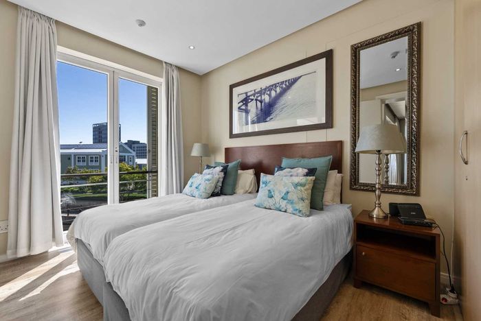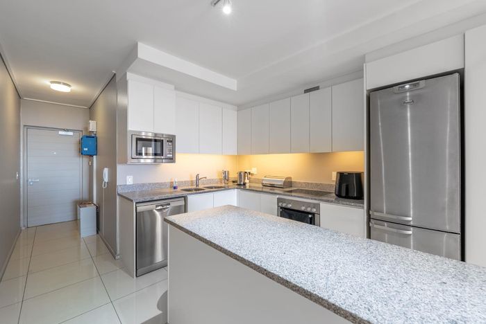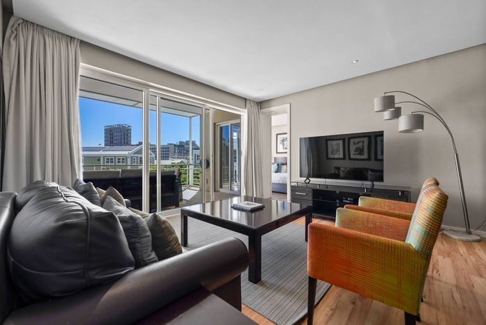 Enjoy waterfront-adjacent Green Point living steps from the V&A, cafés and parks — designer-furnished, turnkey apartment with private balcony showcasing panoramic city and ocean views, two en‑suite bedrooms.