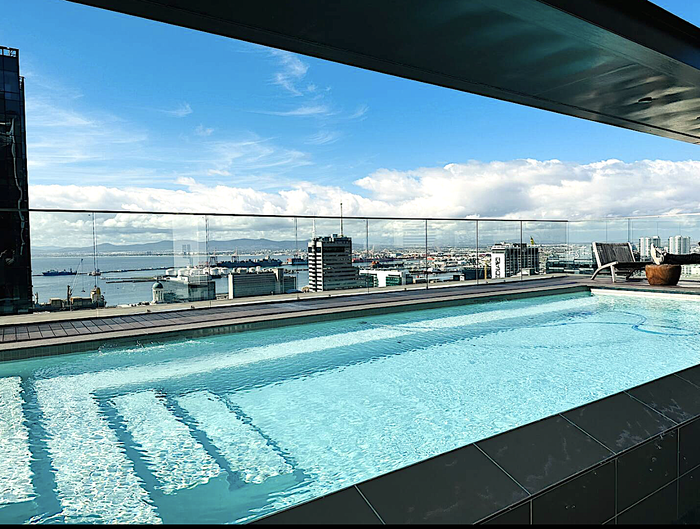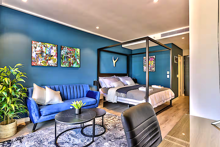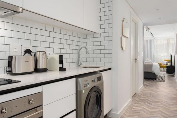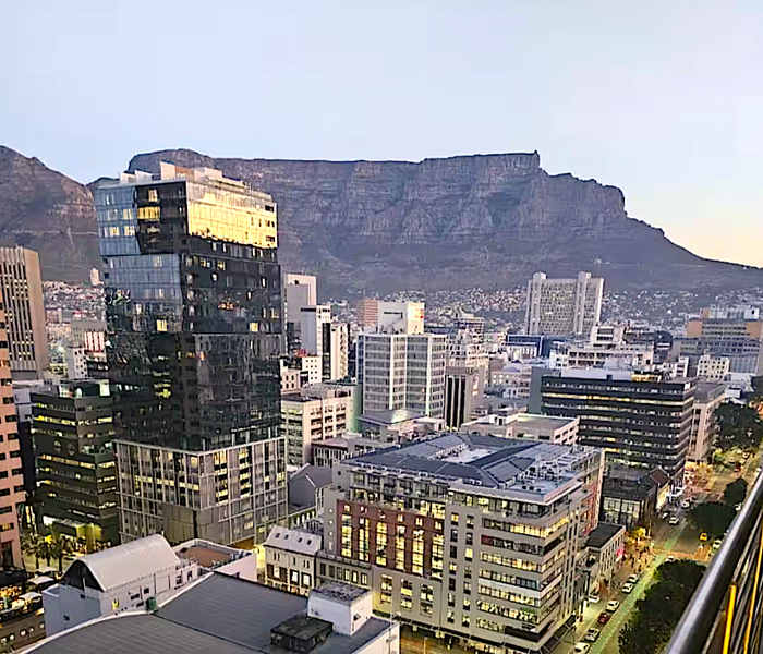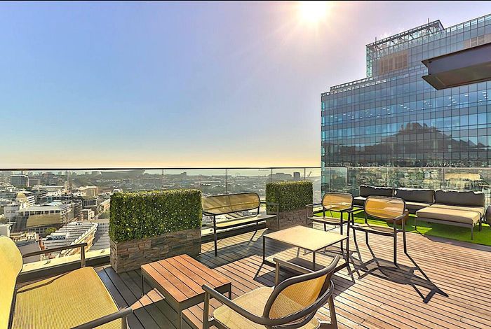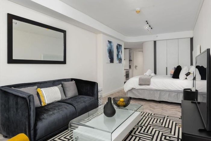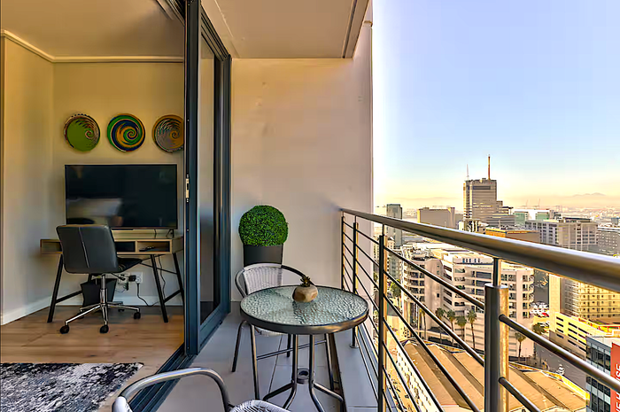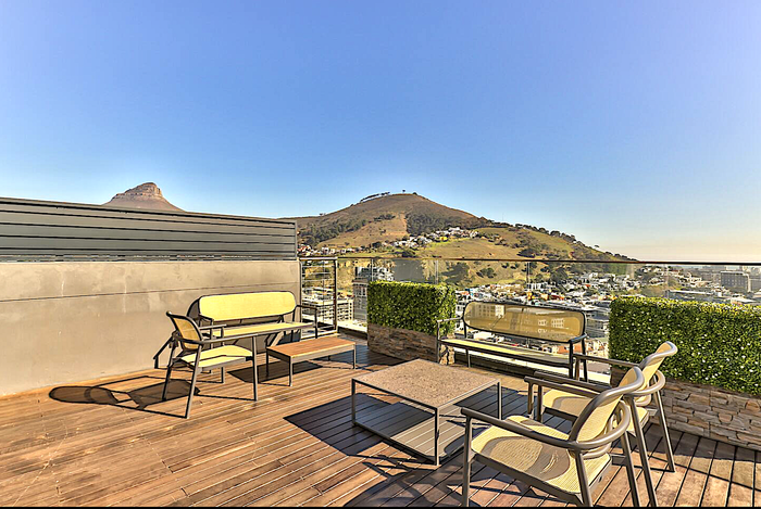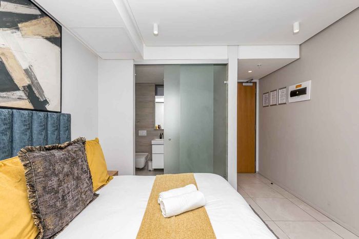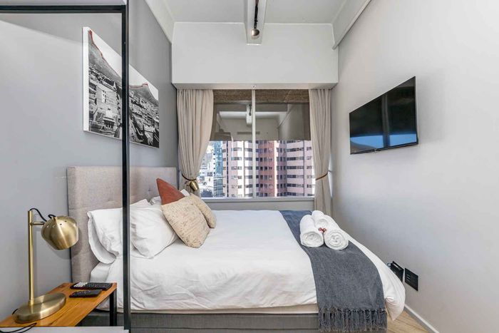 Effortless city living steps from the CTICC, Waterfront and Thibault Square, with panoramic Lion’s Head views and access to a rooftop pool deck — one bathroom studio ideal for Airbnb.