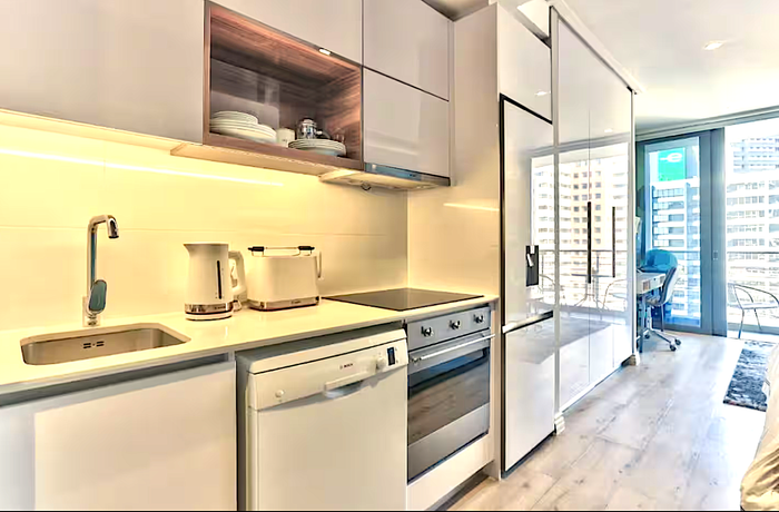 Enjoy vibrant CBD living on St George's Mall with Lion's Head views, 10th-floor modern apartment featuring a sleek kitchen, aircon, one bedroom, bathroom and undercover parking.