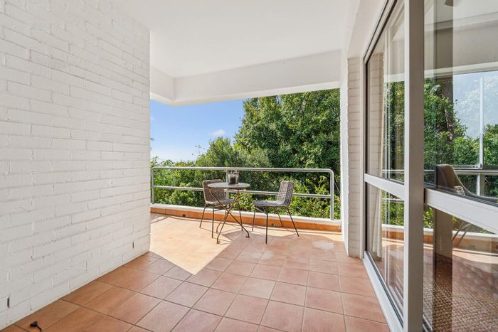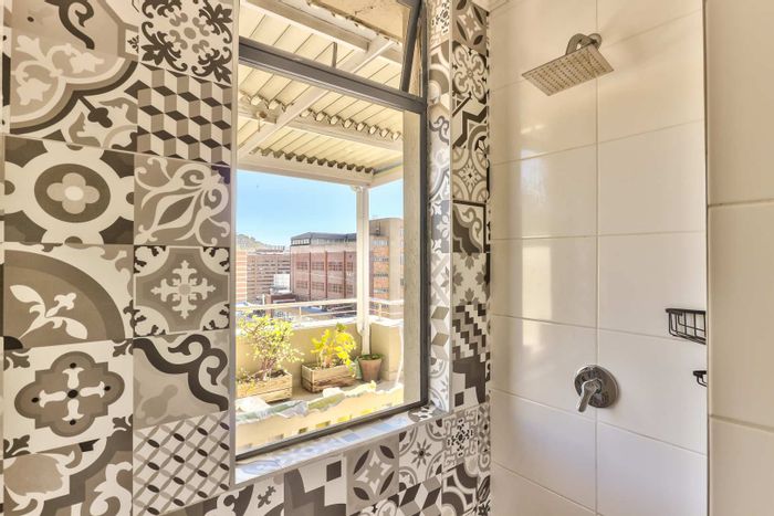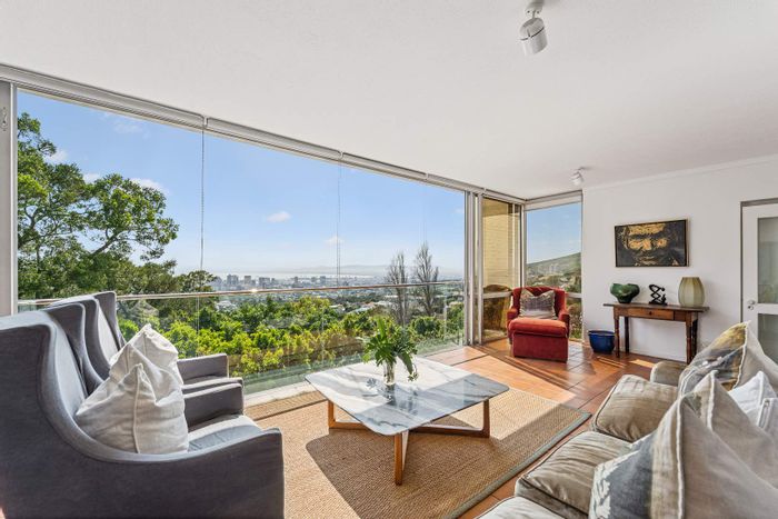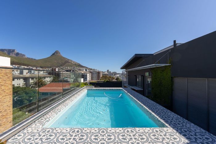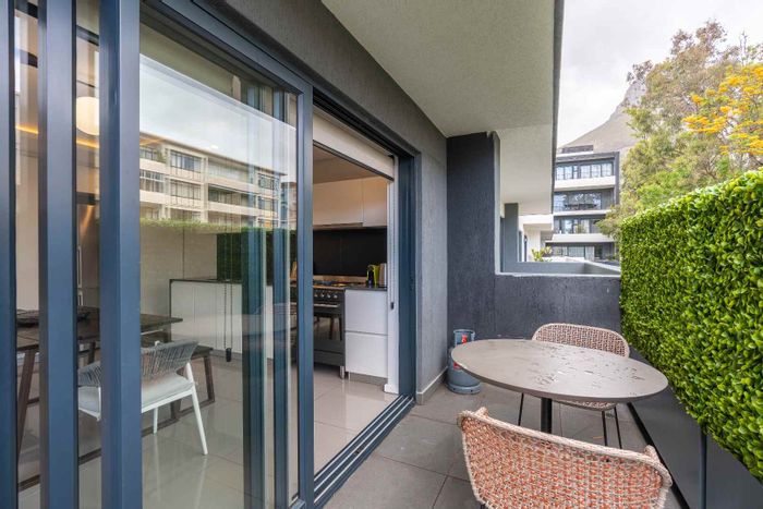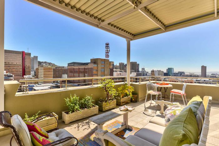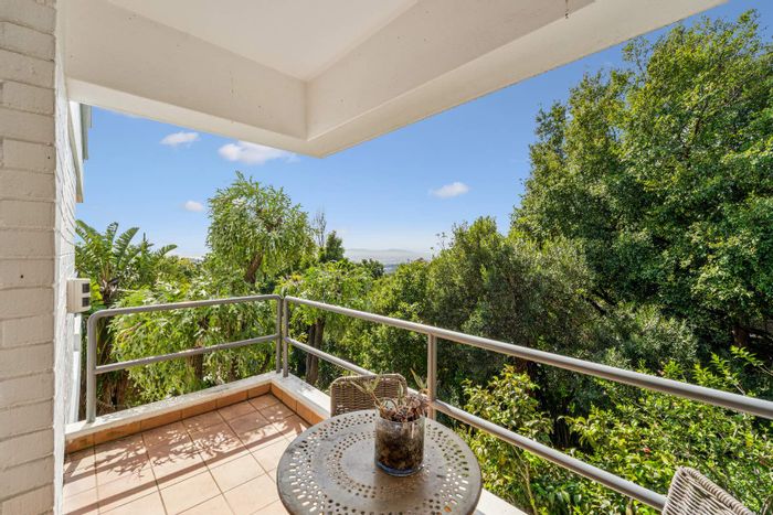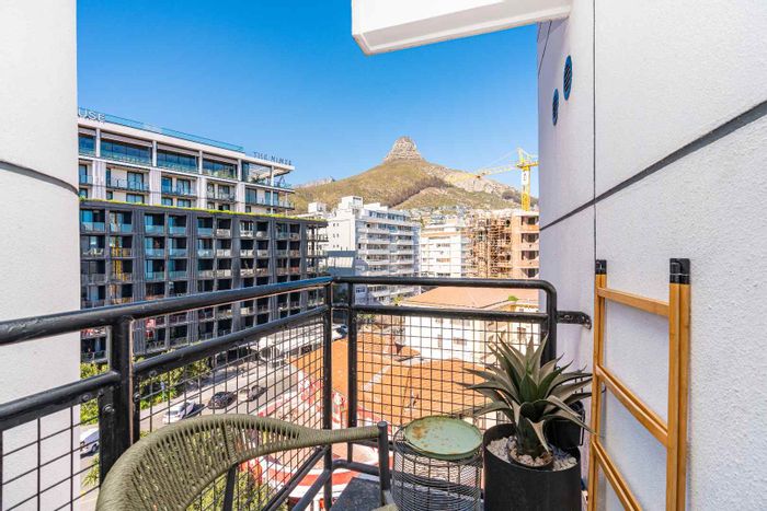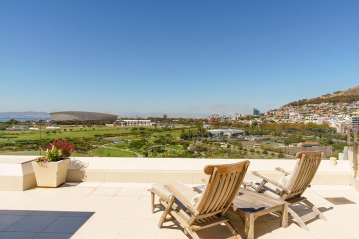 Two-bedroom apartment with city views, balcony access, and parking near Kloof Street and De Waal Park.